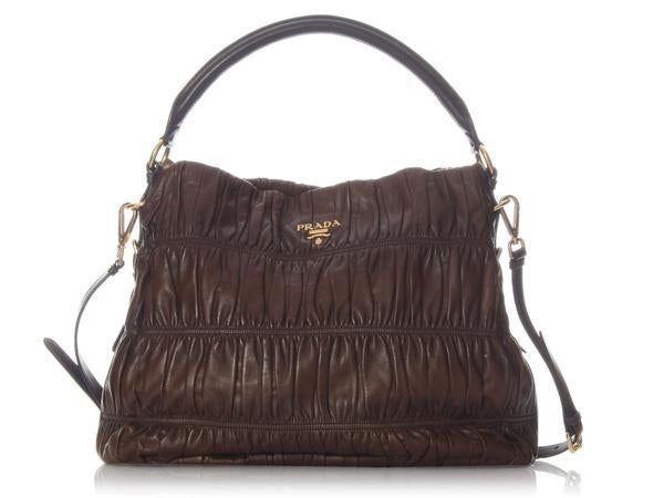 Prada Ruched Brown Leather Hobo