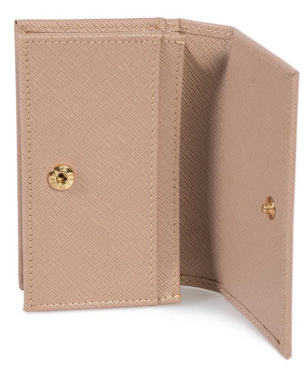 This Prada saffiano beige card holder wallet is the perfect size for your personal necessities. The gold Prada Milano logo looks amazing with the beige saffiano leather. Includes authenticity cards and Prada box.