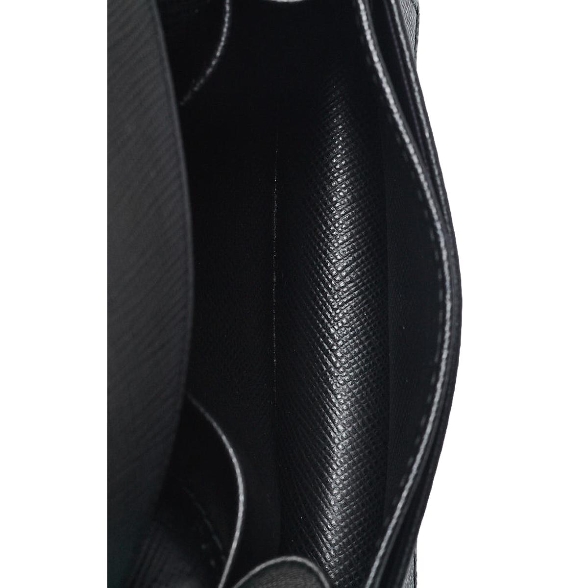 This Prada vitello black card holder is absolutely adorable and is the perfect size for travel. The front flap is decorated with a gold Prada Paris logo, and opens to a main interior compartment with three card slots. Stay organized and in style with this polished card holder.