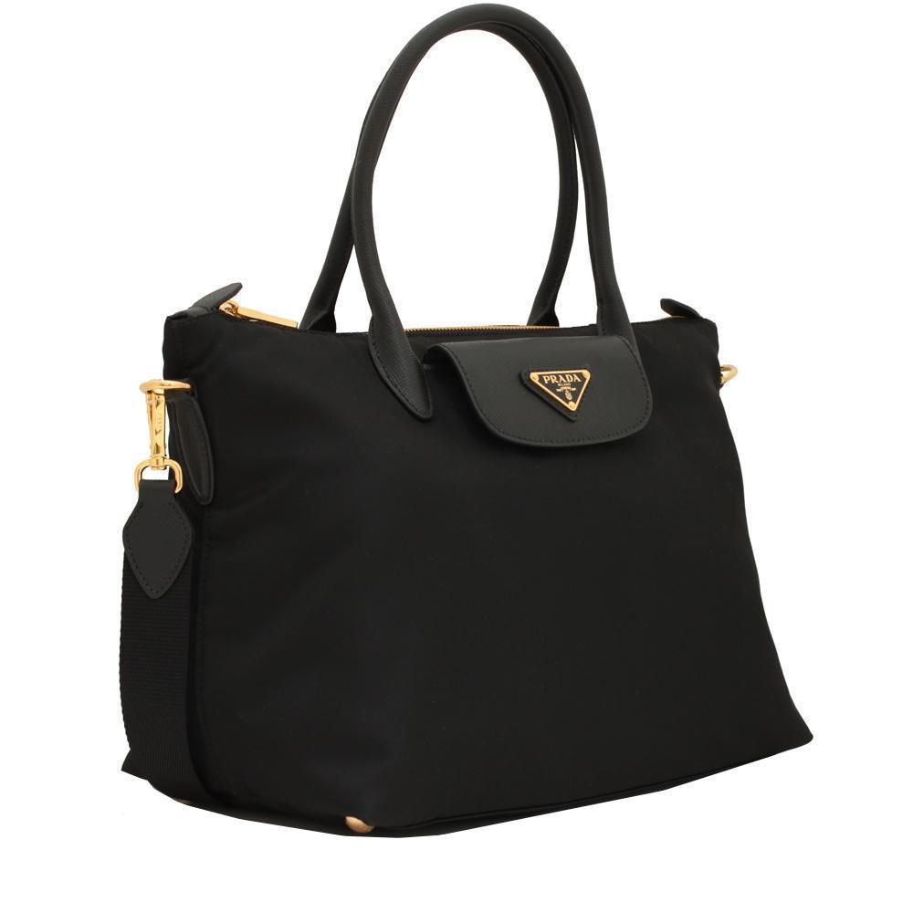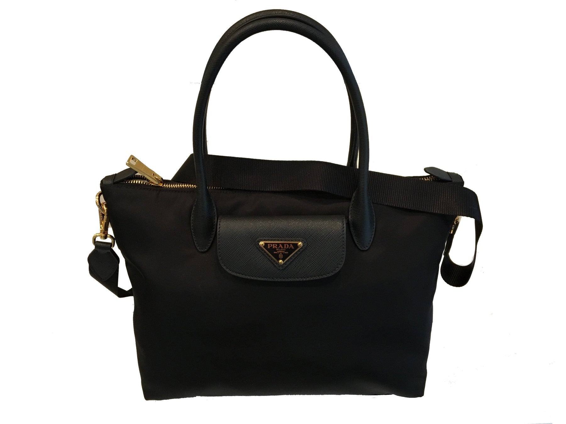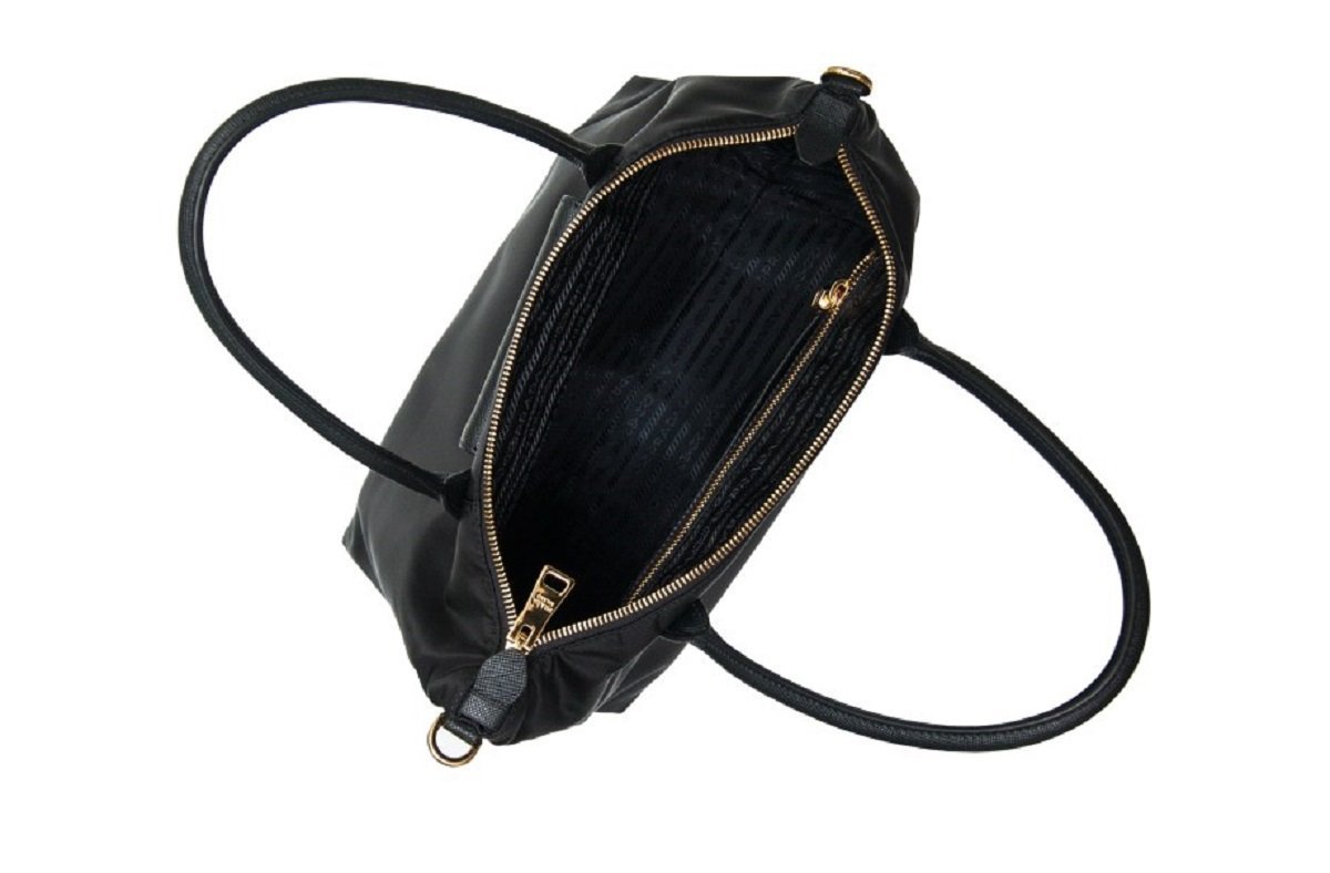 Prada Tessuto Nylon Saffiano Leather Black Shopping Tote Bag 1BA106