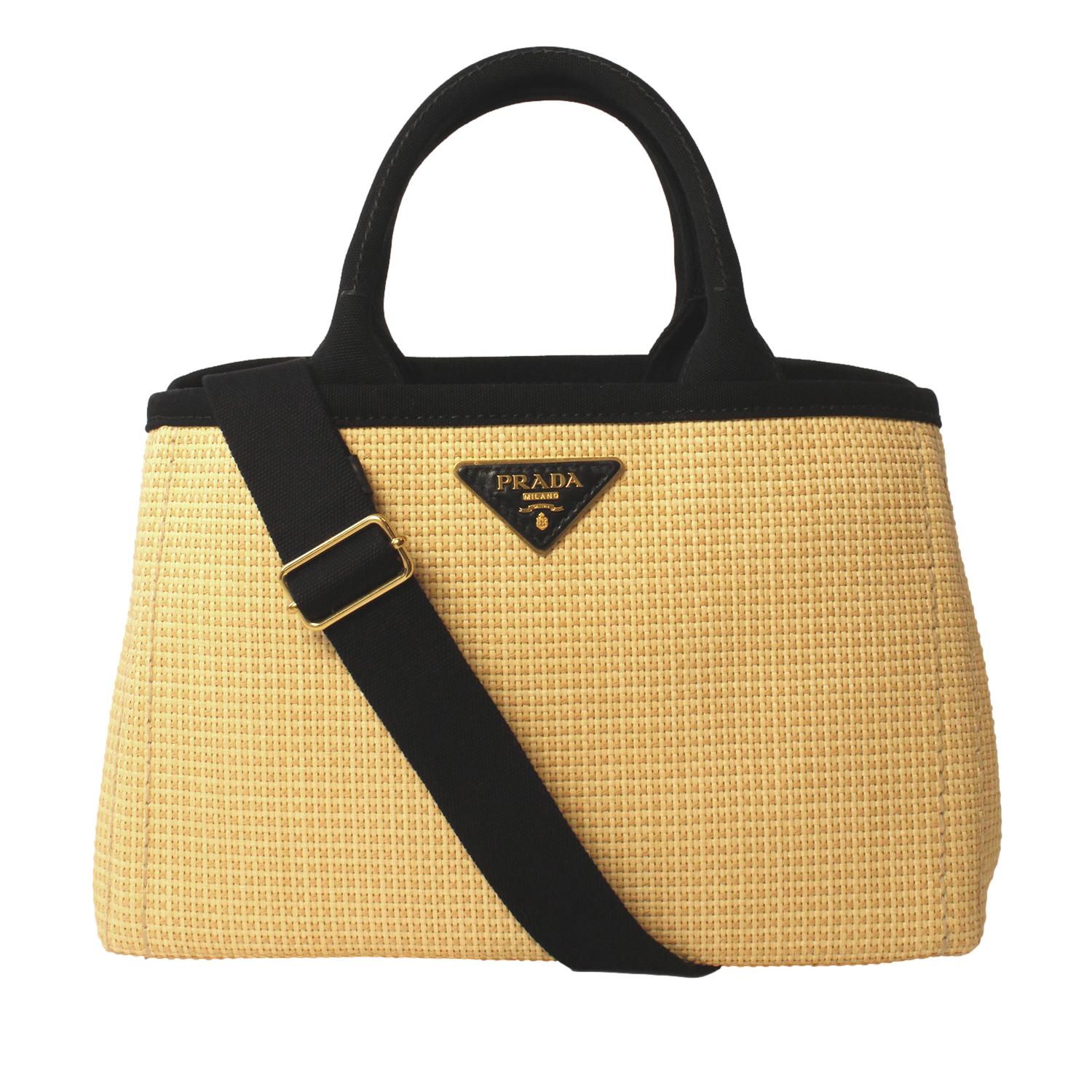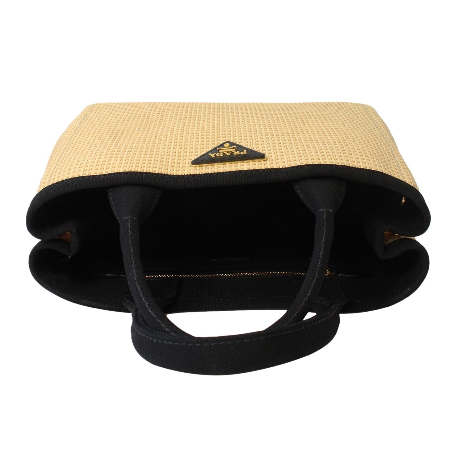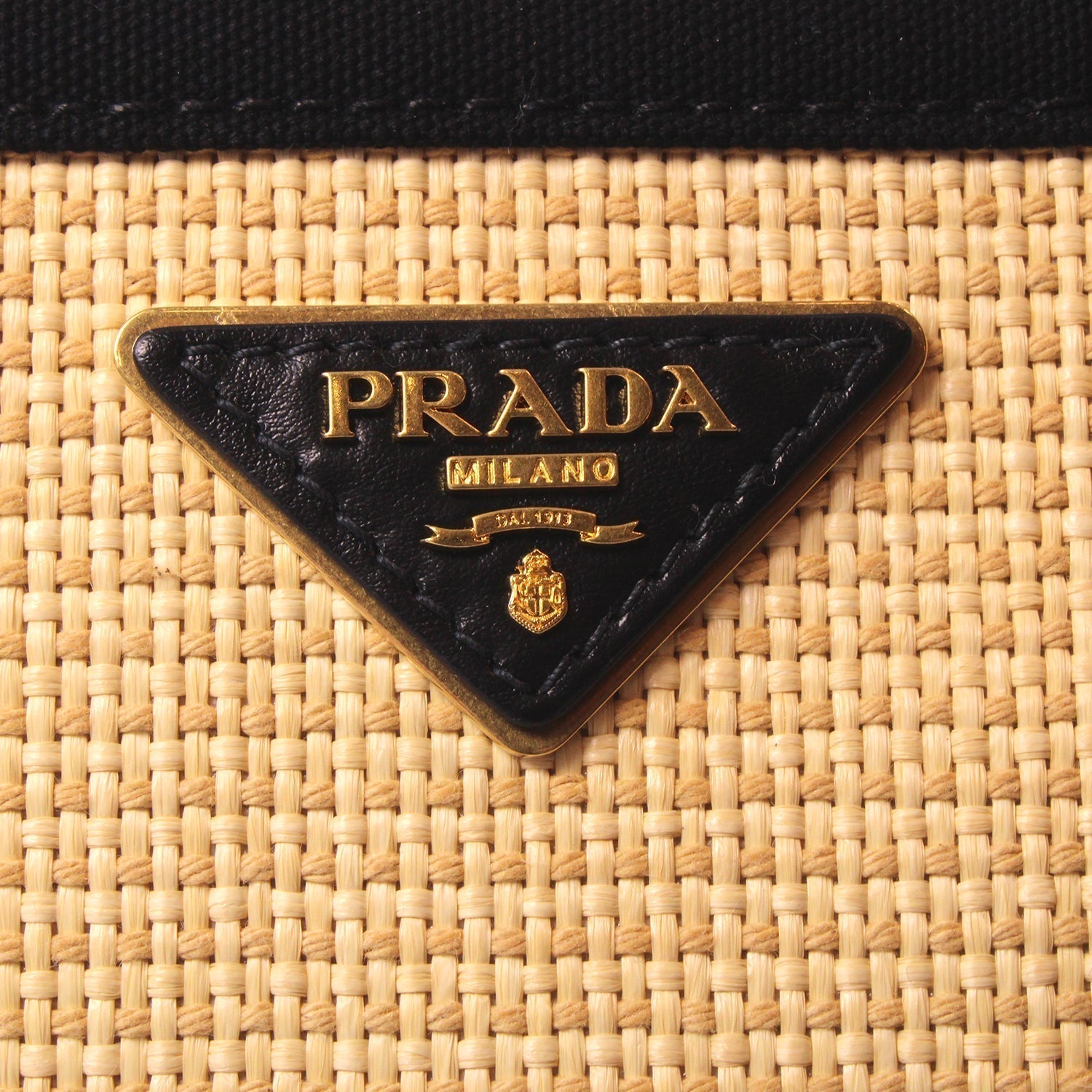 This gorgeous Prada tote is your perfect summer or warm weather bag! It has beautiful beige woven straw all around with all gold-toned hardware accents. The bag is lined with beautiful black canapa along with the double handle and adjustable strap. This is a simple bag but a staple in anyone's closet and collection.