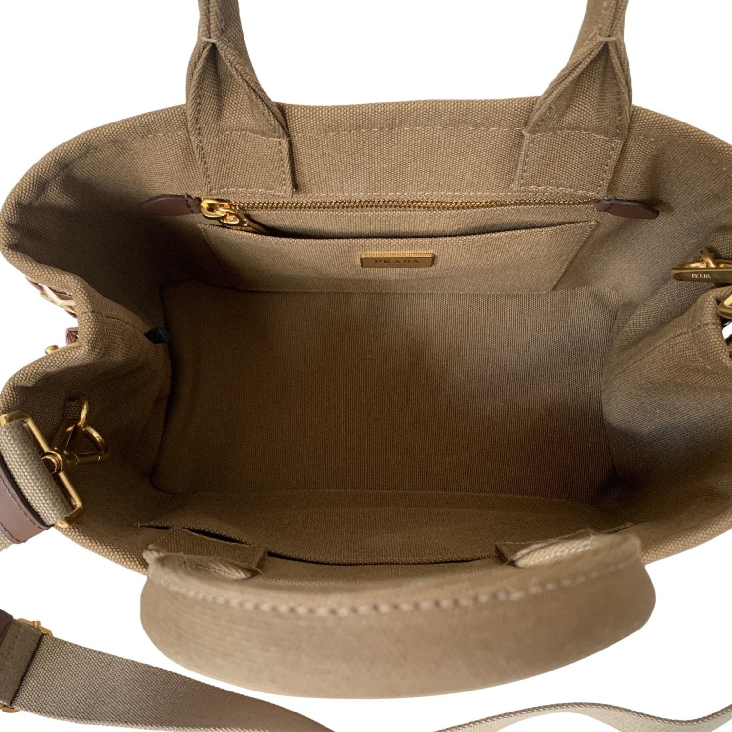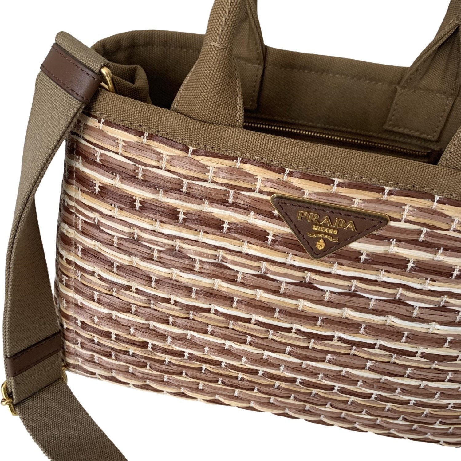 - Prada logo on front of bag