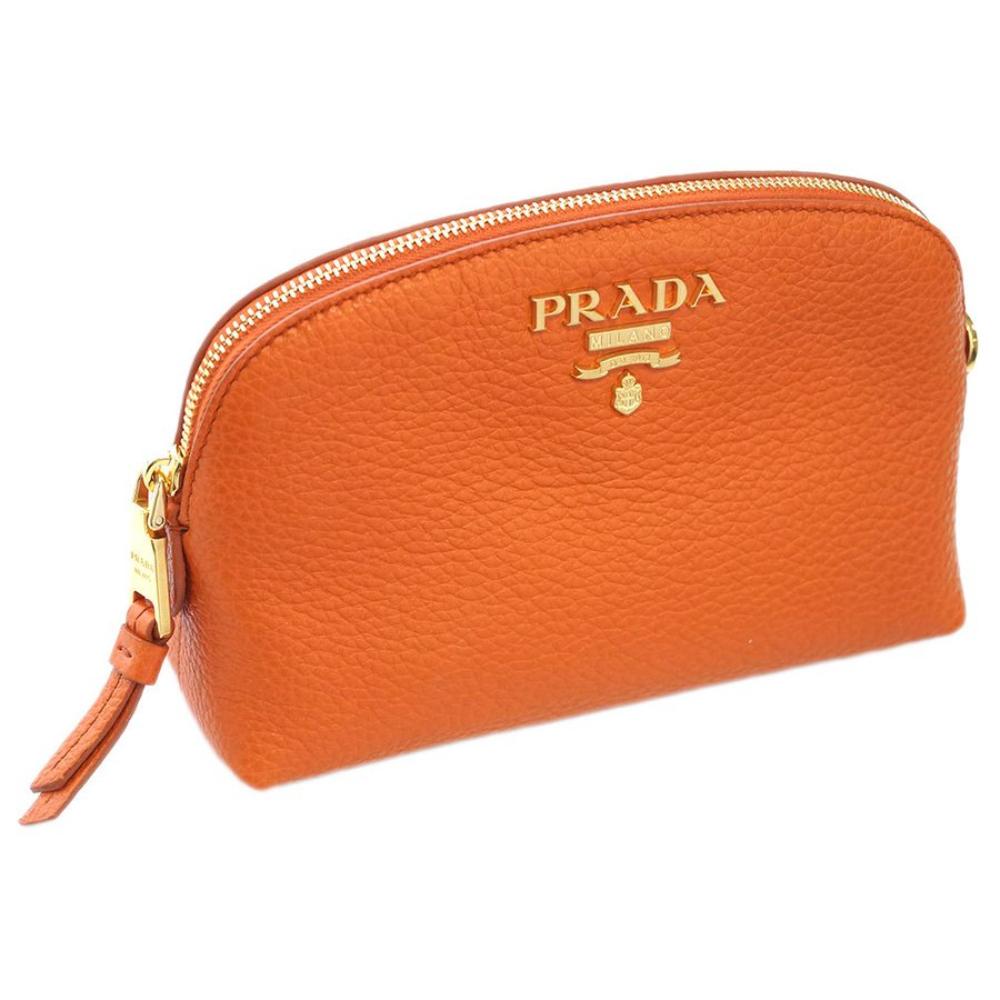 This Prada vanity case is so cute and coordinates beautifully with all of Prada's Vitello Daino leather collection! This cosmetic pouch is crafted of textured calfskin leather in an orange color. The bag features a large facing Prada plate and a gold wrap around main zipper that opens to a black jacquard fabric interior. The size is perfectly compact to hold your essential cosmetic items that you may want to take with you on a trip or out for the day.
