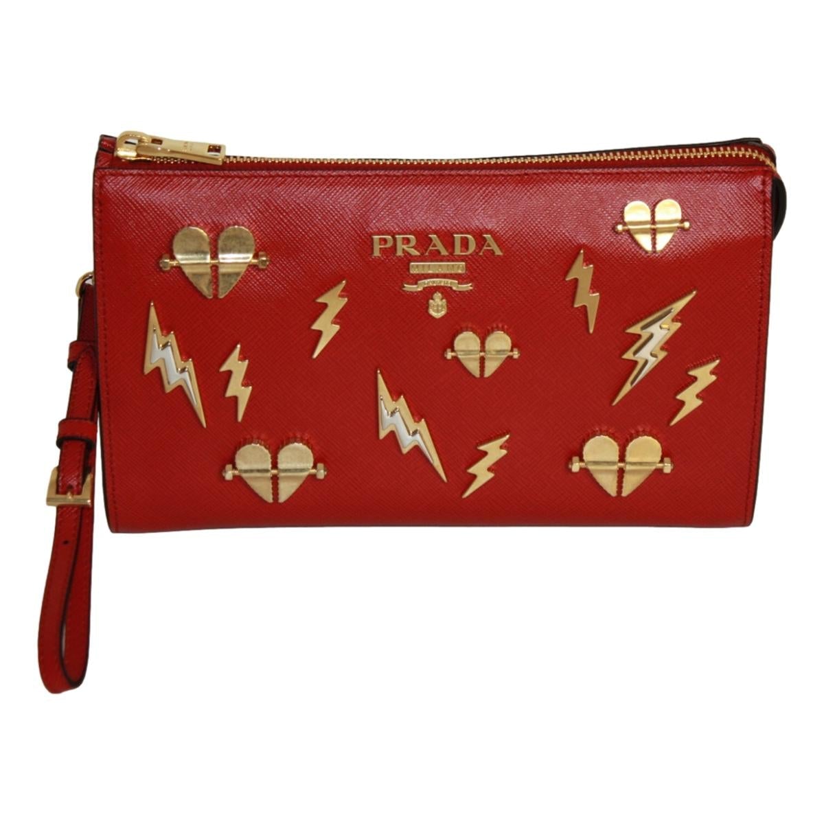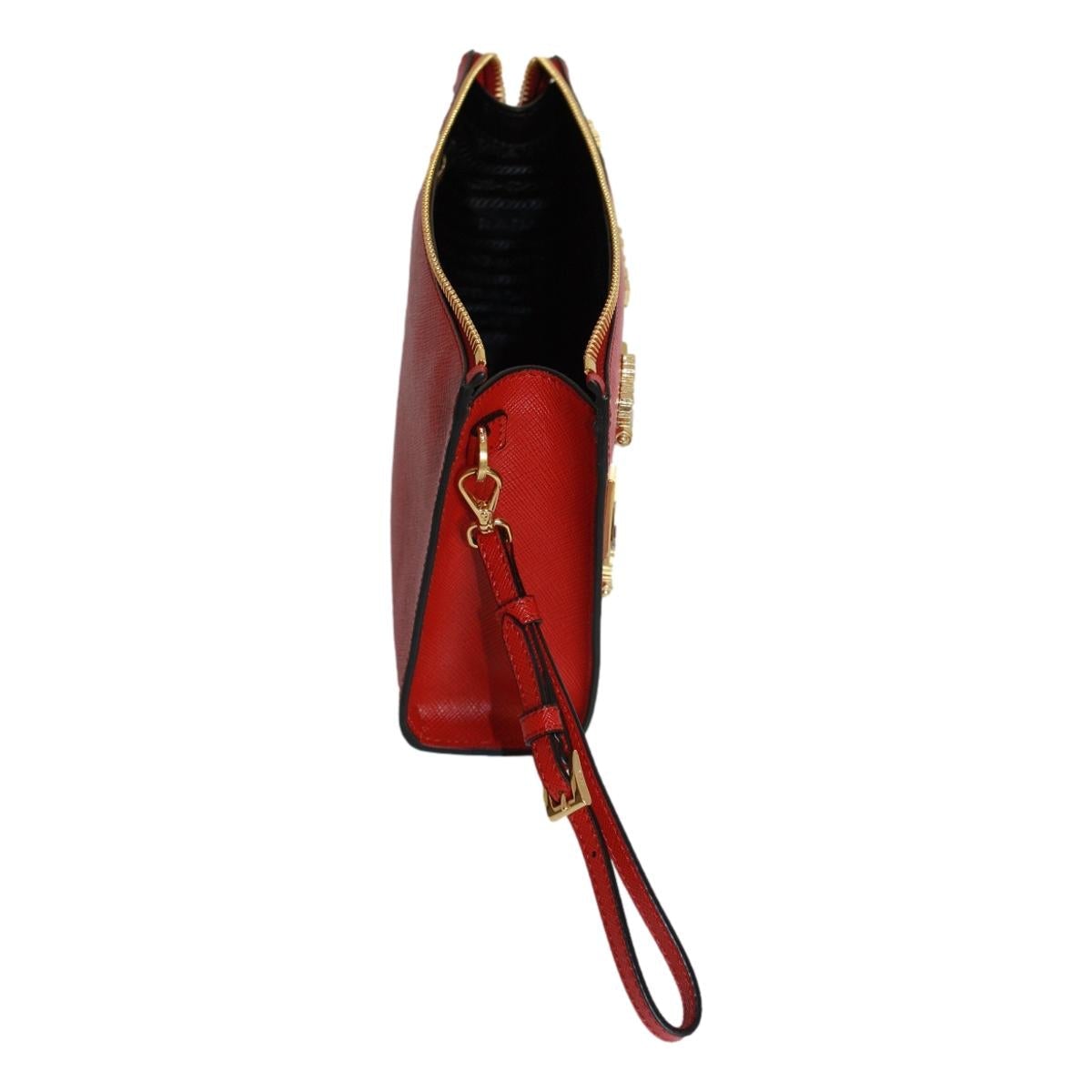 Prada Fuoco Red Saffiano Leather Wristlet Clutch with Gold Hardware