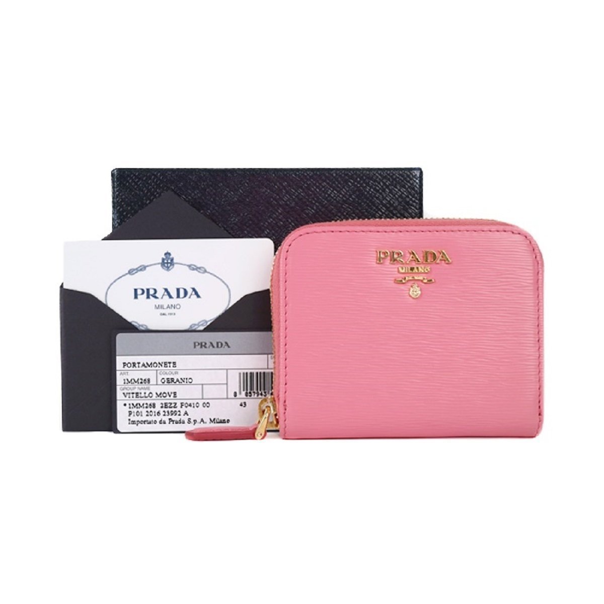 Carry everything you need in this pink wallet, the perfect size to just grab and go or to throw in your bag, this wallet is just what you are looking for. With the gold Prada on the front to make you stand out this will give you the luxurious lifestyle you have always wanted.