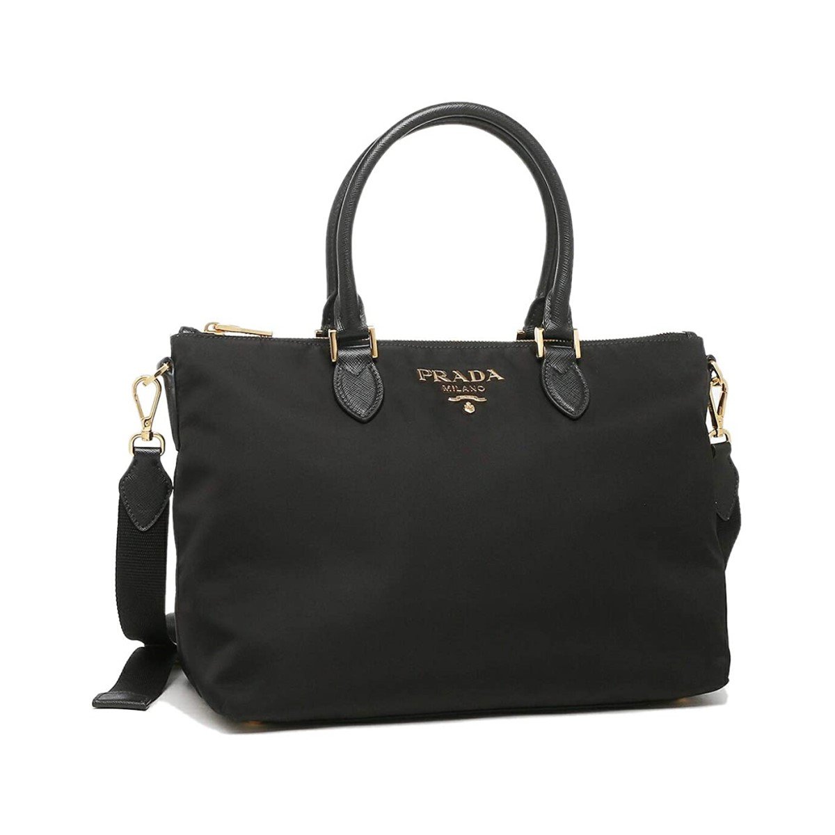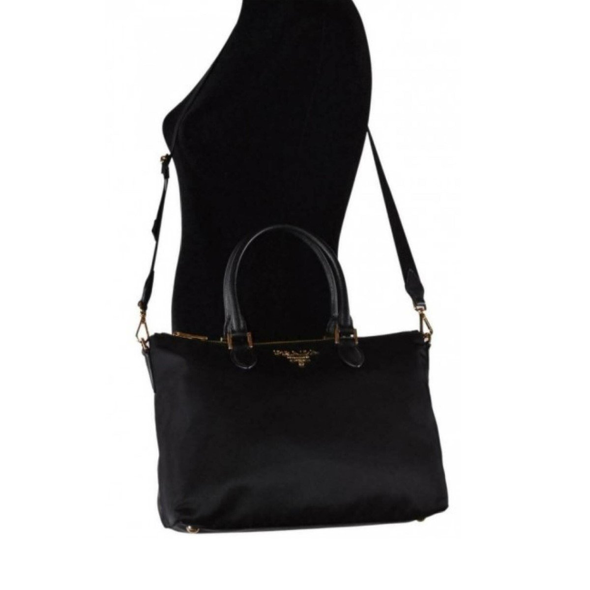 Prada Tessuto Nylon Saffiano Leather Trim Black Medium Satchel 1BA278