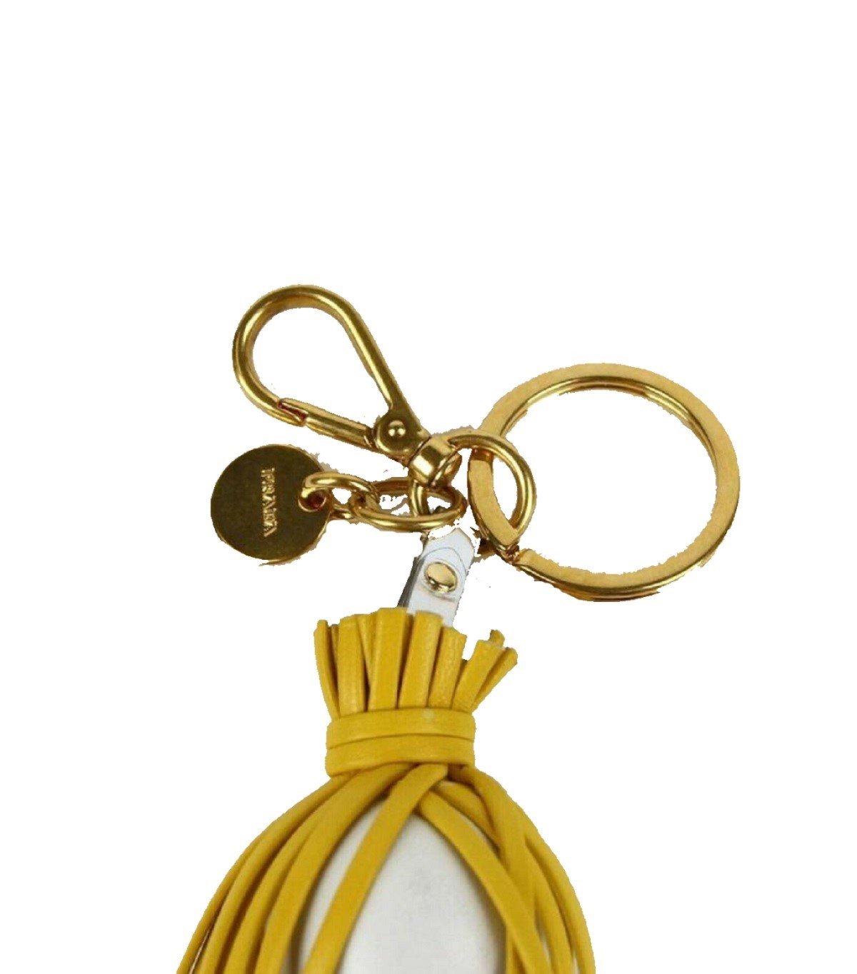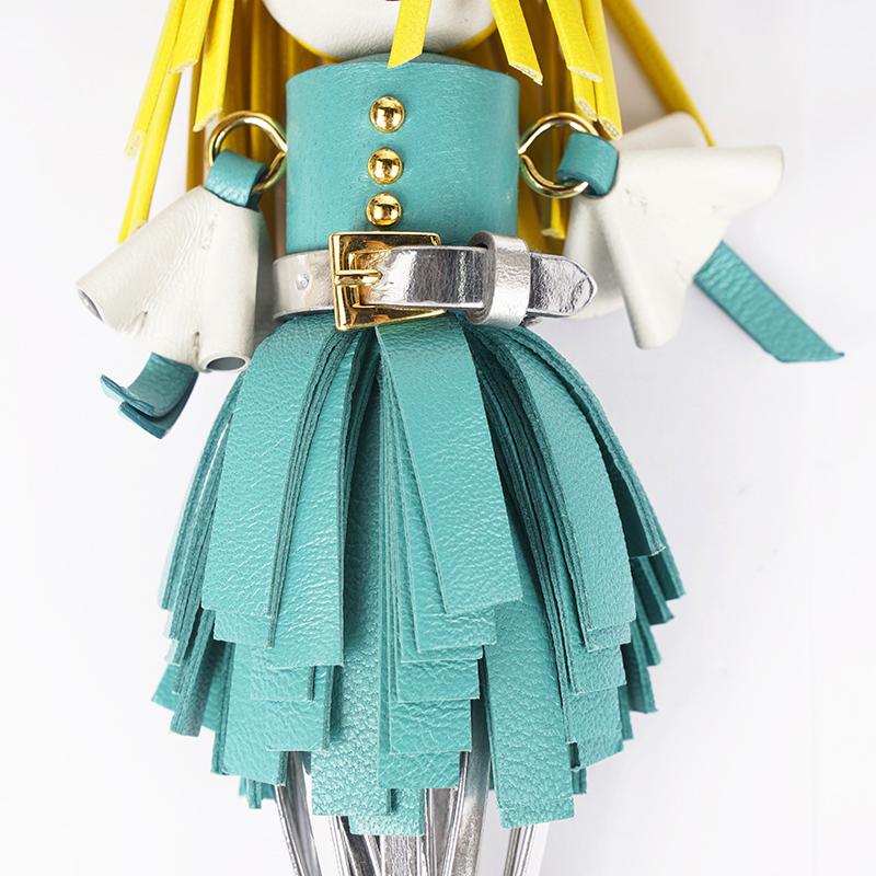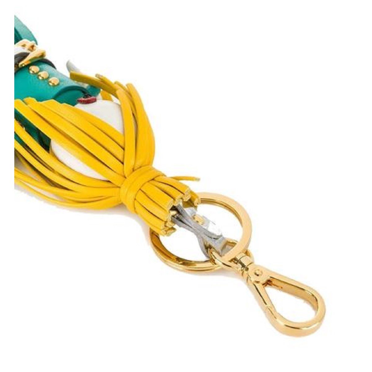 This Prada Alice doll key chain is absolutely adorable. This Prada charm is the perfect accessory for your designer handbag. The teal and yellow leather looks so cute together. This Prada key chain is so unique and different. Perfect for adding a pop of color to your bag! Includes authenticity cards and Prada box.