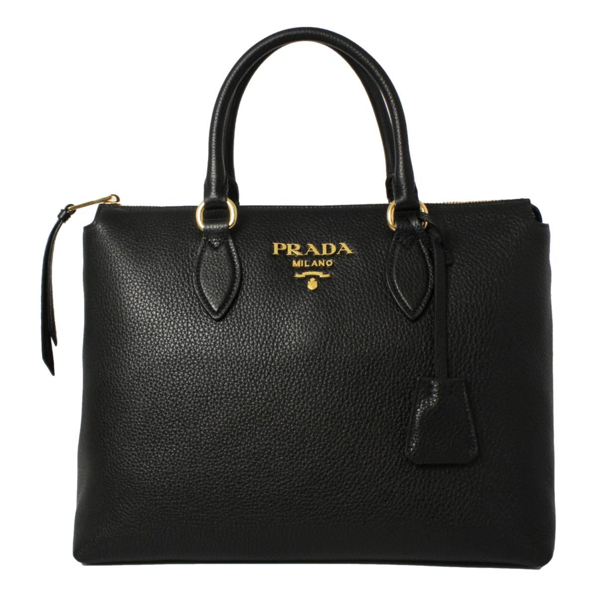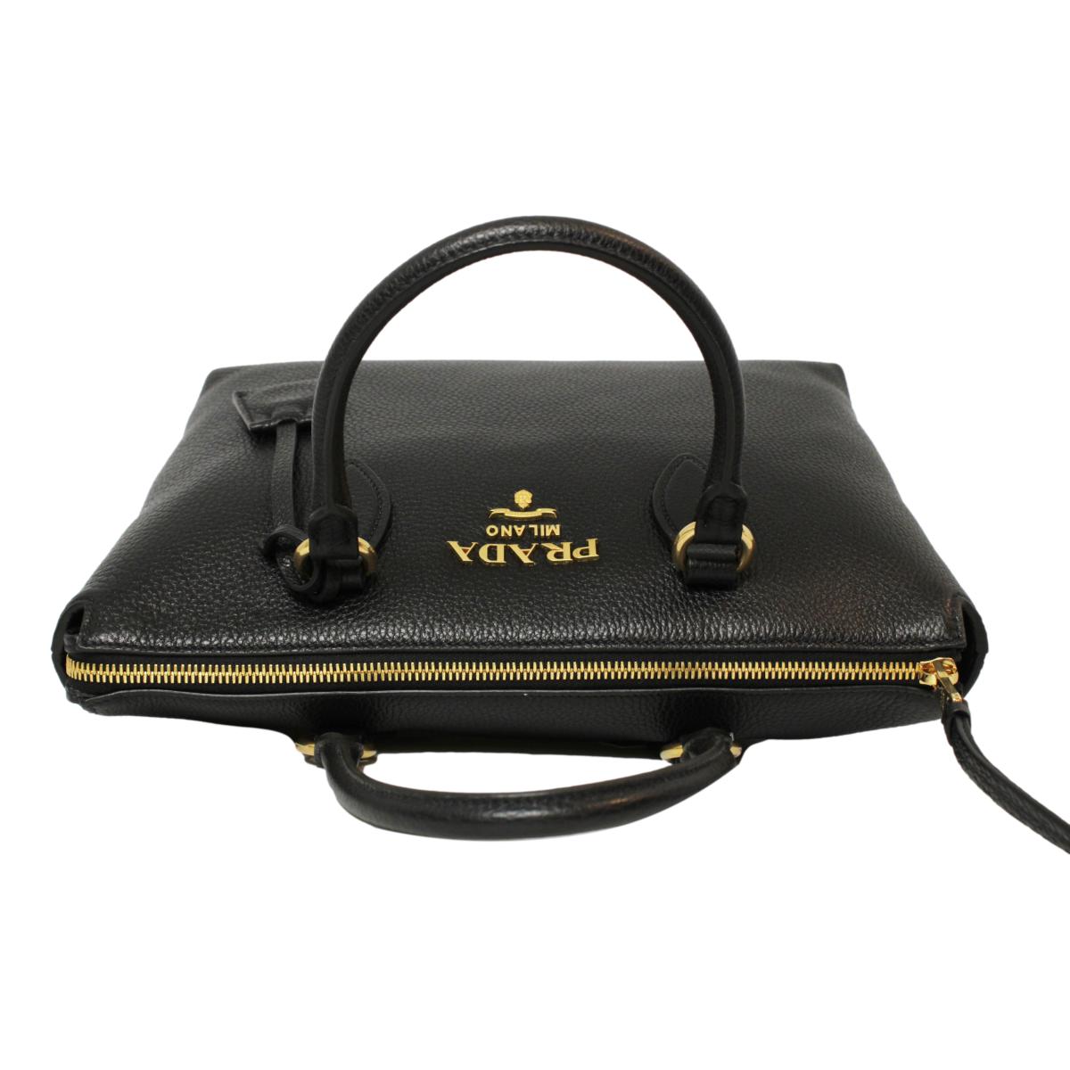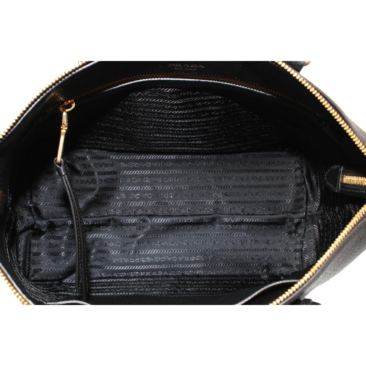This Prada Women's Black Vitello Phenix Leather handbag is so classy and pairs well with your wardrobe. The elegant gold Prada logo looks so beautiful on the black leather. There is plenty of storage space inside of the handbag for your personal belongings. The adjustable strap makes it easy to wear over the shoulder or as a crossbody. The handles are also great for carrying when you are on the go.