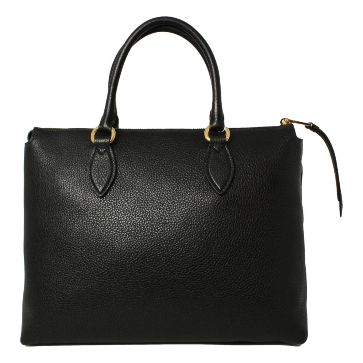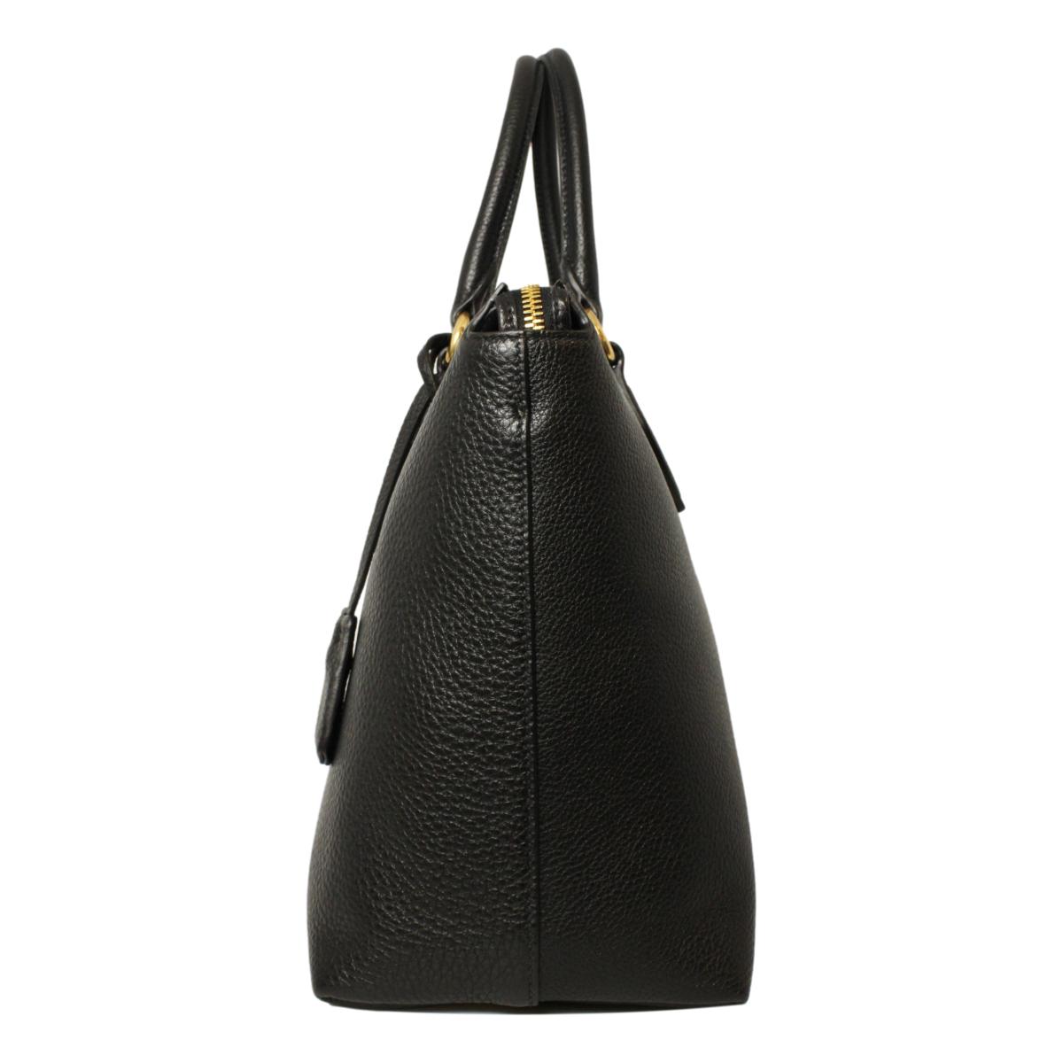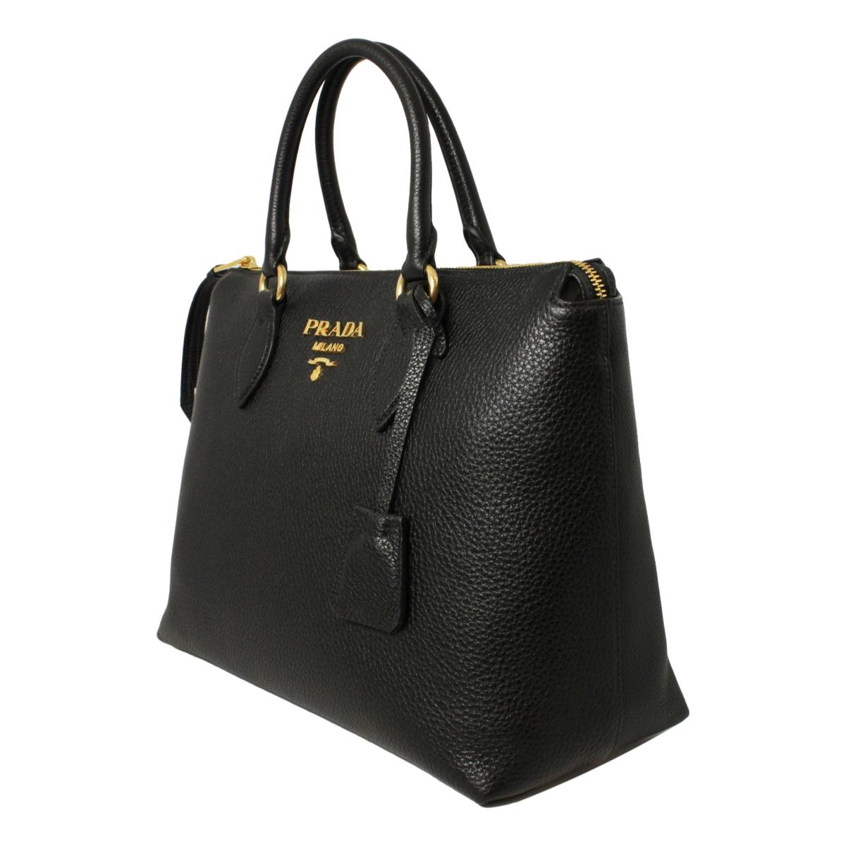 This Prada Women's Black Vitello Phenix Leather handbag is so classy and pairs well with your wardrobe. The elegant gold Prada logo looks so beautiful on the black leather. There is plenty of storage space inside of the handbag for your personal belongings. The adjustable strap makes it easy to wear over the shoulder or as a crossbody. The handles are also great for carrying when you are on the go.