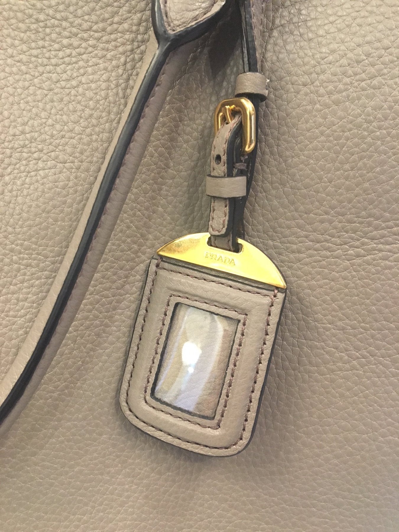 This lovely gray leather shopping tote features a large open interior with two magnetic close slip pockets and one zippered inside pocket. Comes with a nice detachable ID tag and removable, adjustable shoulder strap. The gray leather will pair nicely with most any outfit for your day to day activities. This item will ship with authenticity cards and a Prada dust bag.
