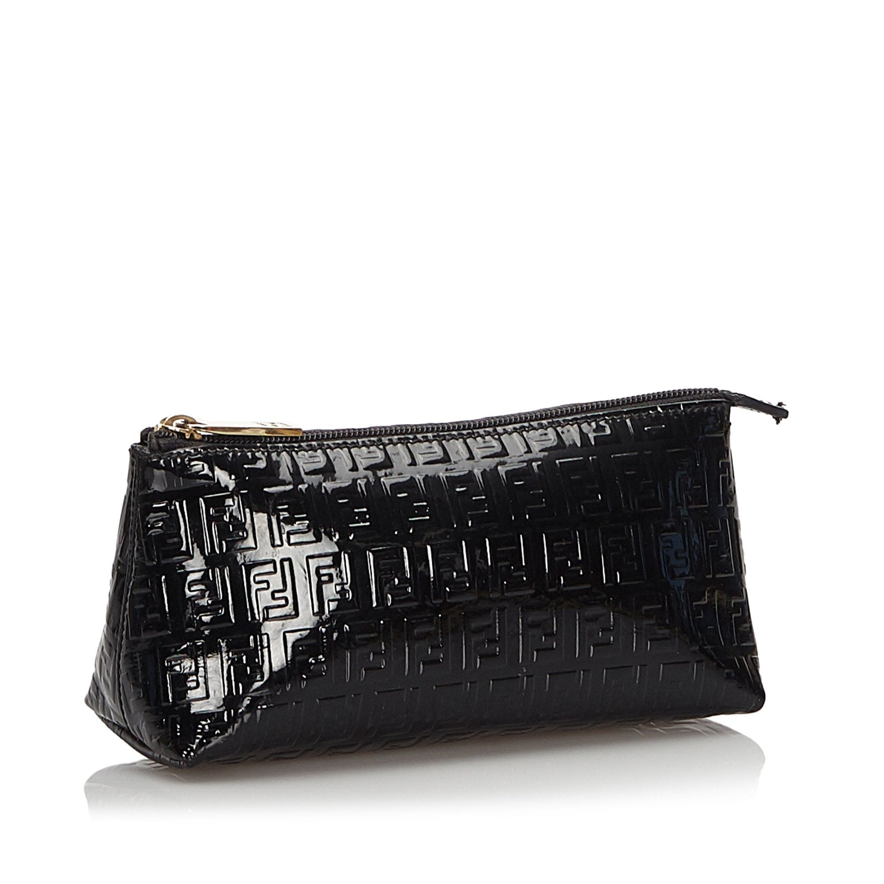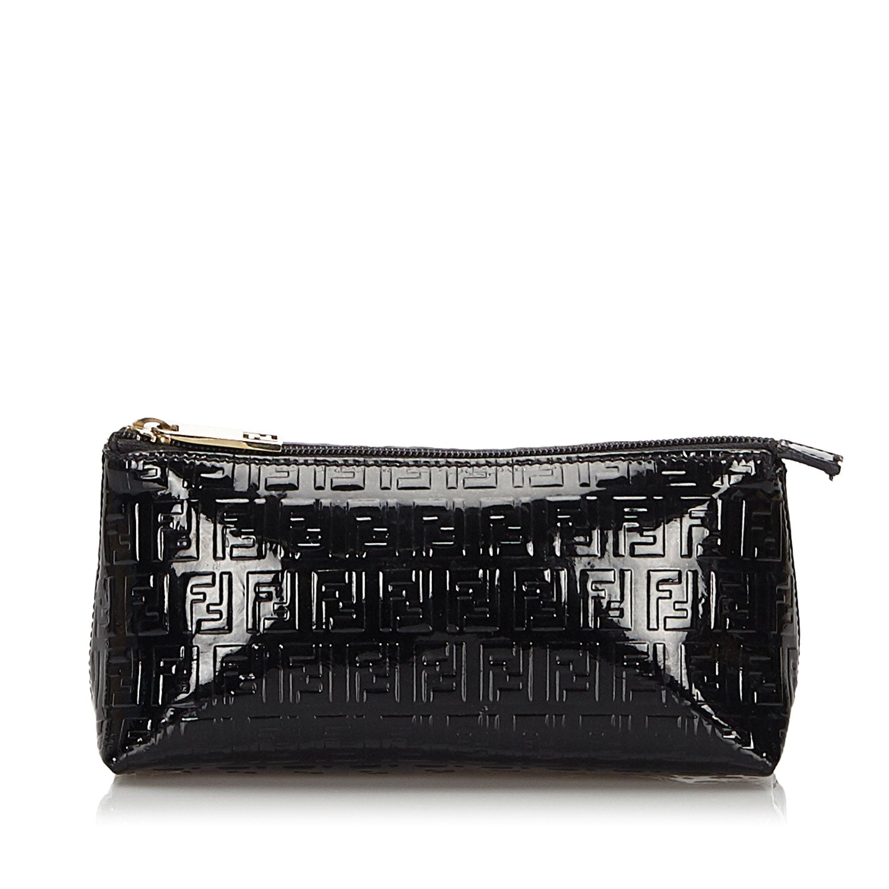 Pre-Loved Fendi Black Patent Leather Zucchino Pouch Italy