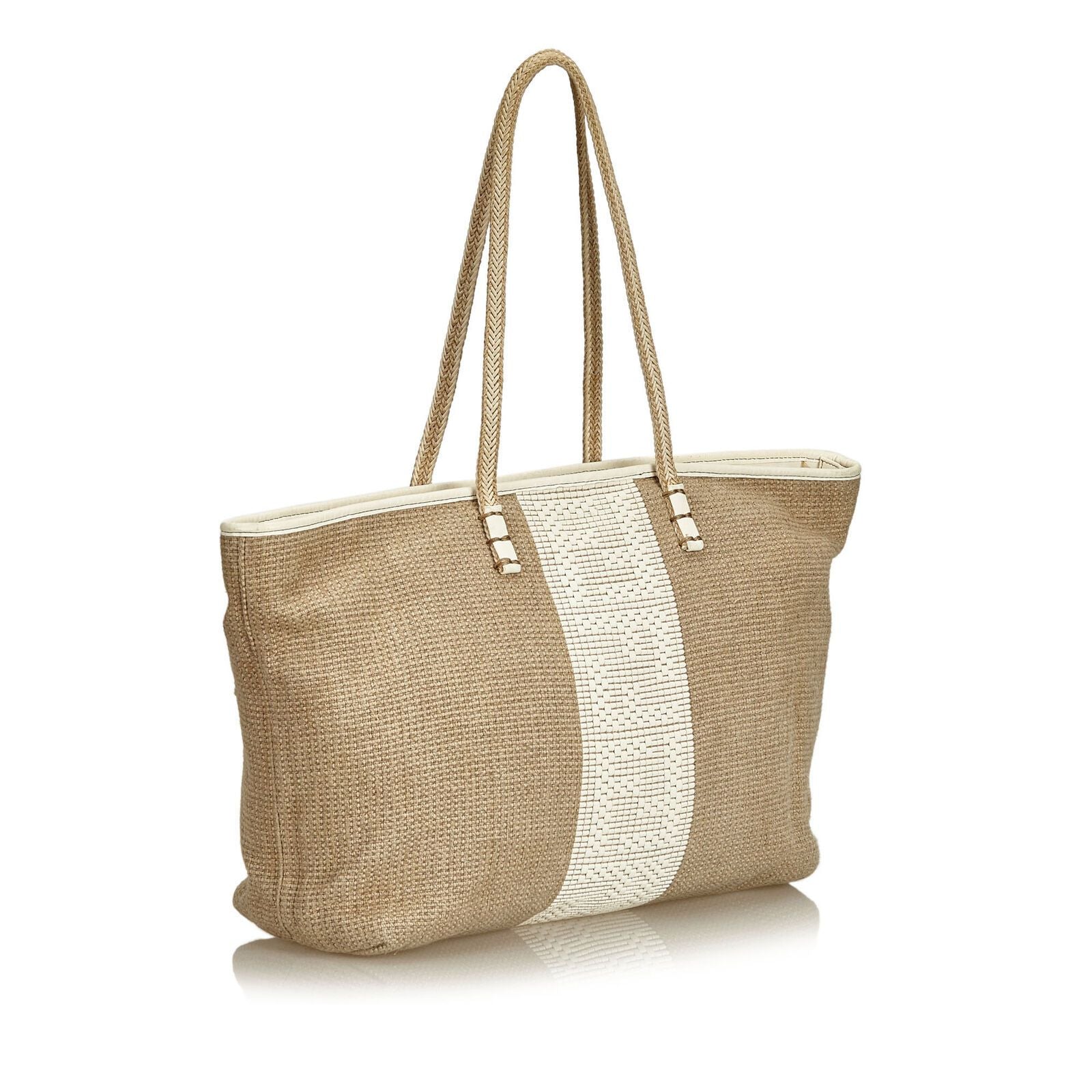 Pre-Loved Fendi Brown Beige Hemp Natural Material Striped Tote Italy