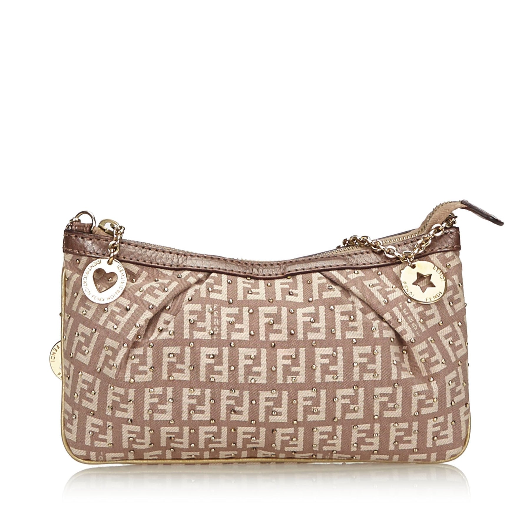 Pre-Loved Fendi Brown Canvas Fabric Zucchino Chain Baguette ITALY