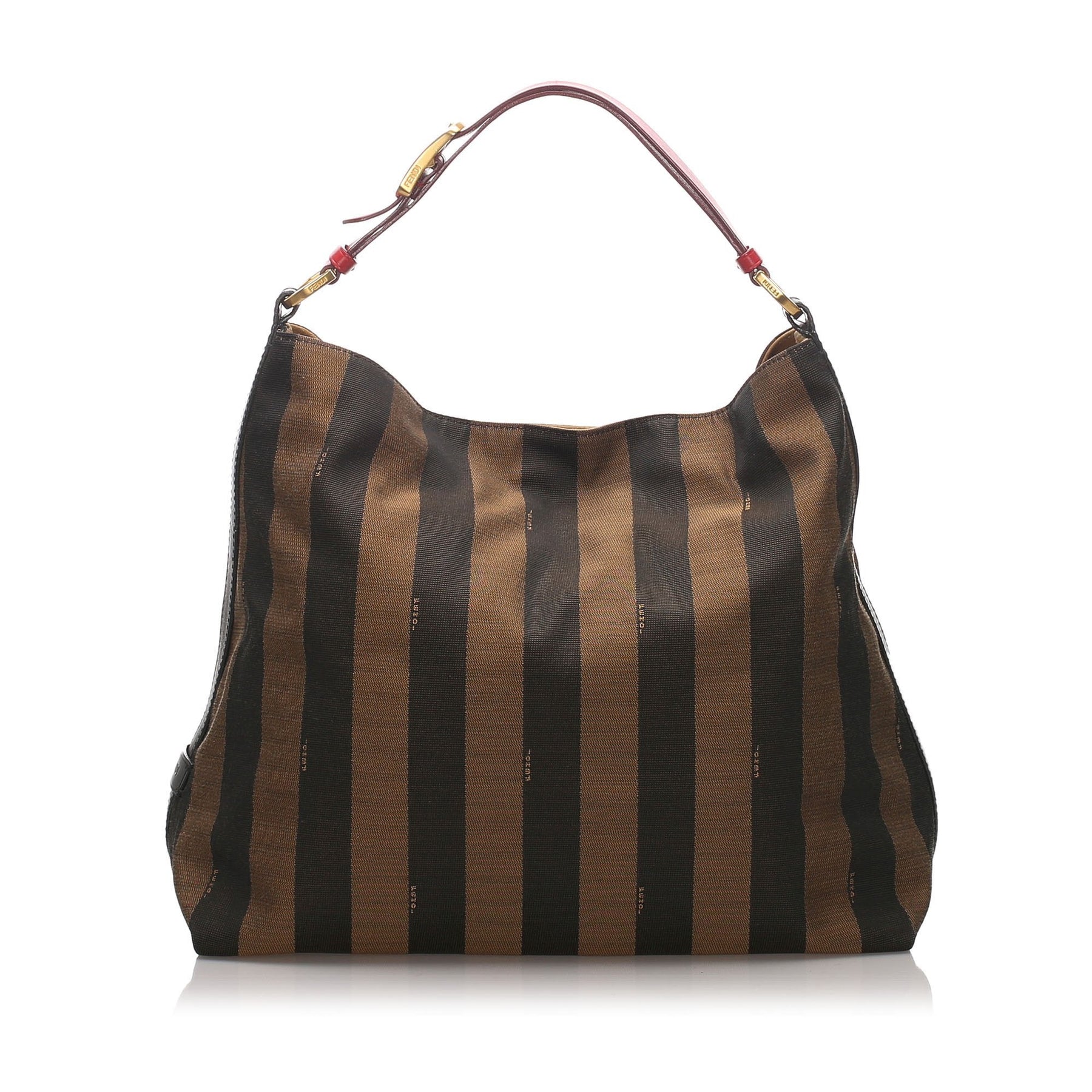 Pre-Loved Fendi Brown Nylon Fabric Pequin Shoulder Bag Italy