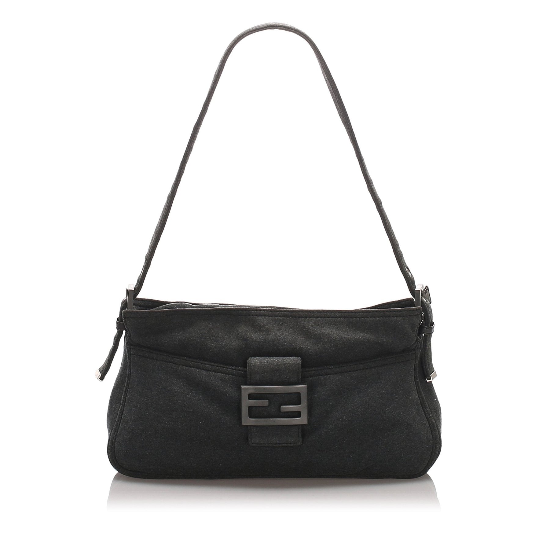 Pre-Loved Fendi Gray Dark Cotton Fabric Baguette Italy