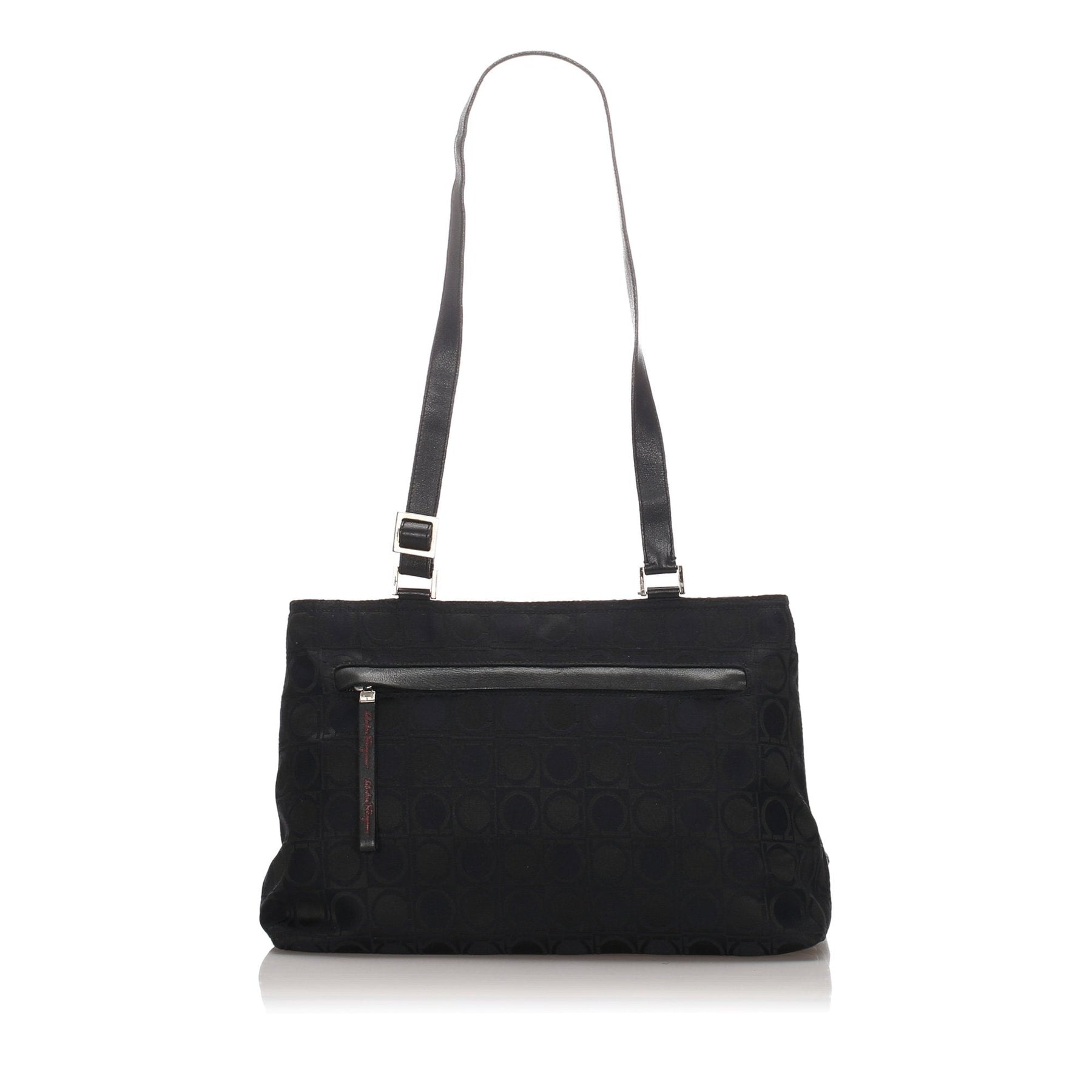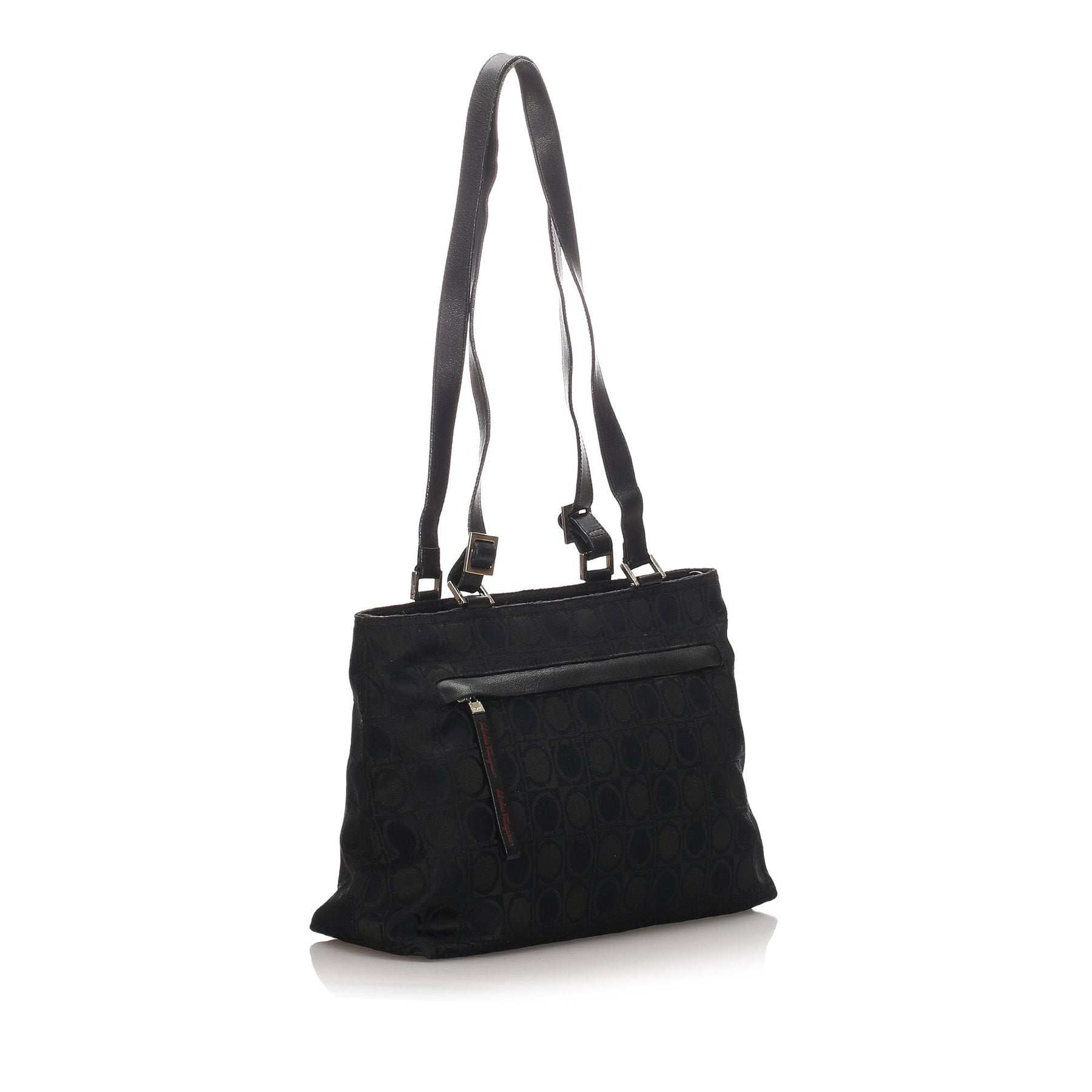 Pre-Loved Ferragamo Black Canvas Fabric Leather Gancini Tote Bag Italy