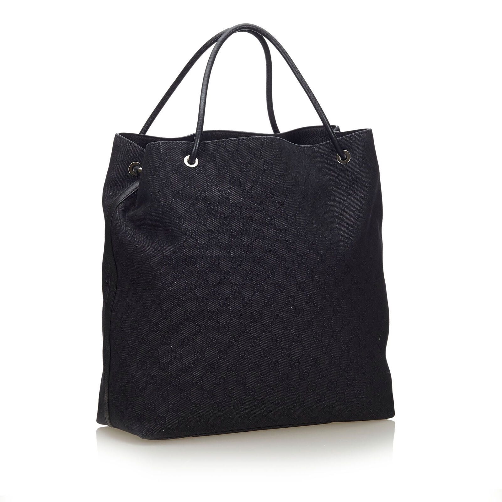 Pre-Loved G*G Black Canvas Fabric GG Gifford Tote Bag Italy
