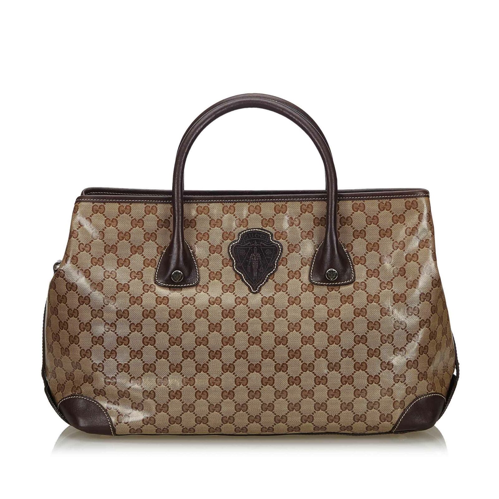 Pre-Loved G*G Brown Beige PVC Plastic GG Crystal Tote Bag Italy