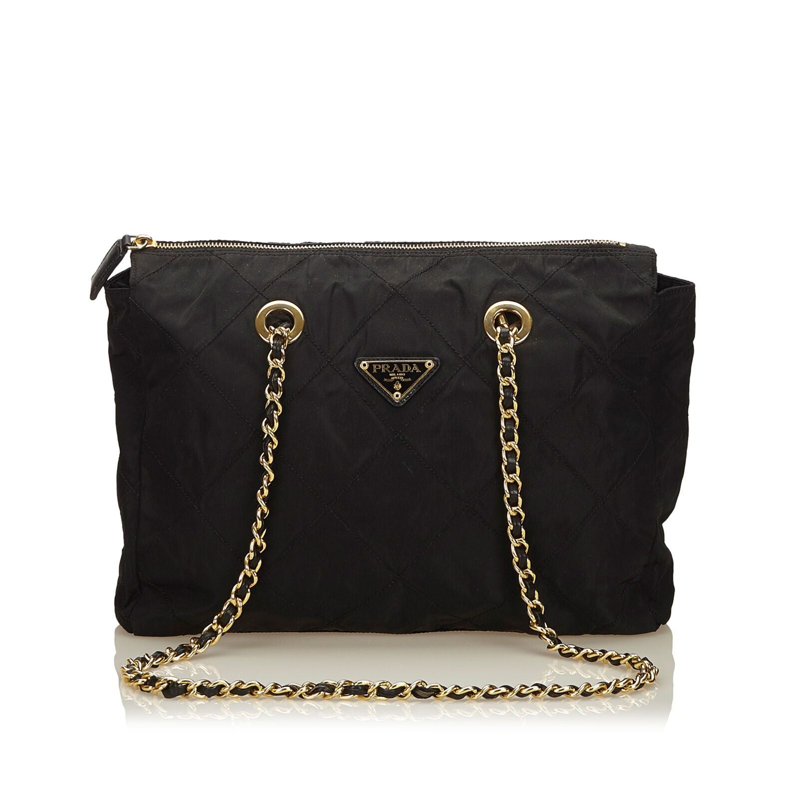 Pre-Loved Prada Black Nylon Fabric Quilted Chain Tote Bag Italy
