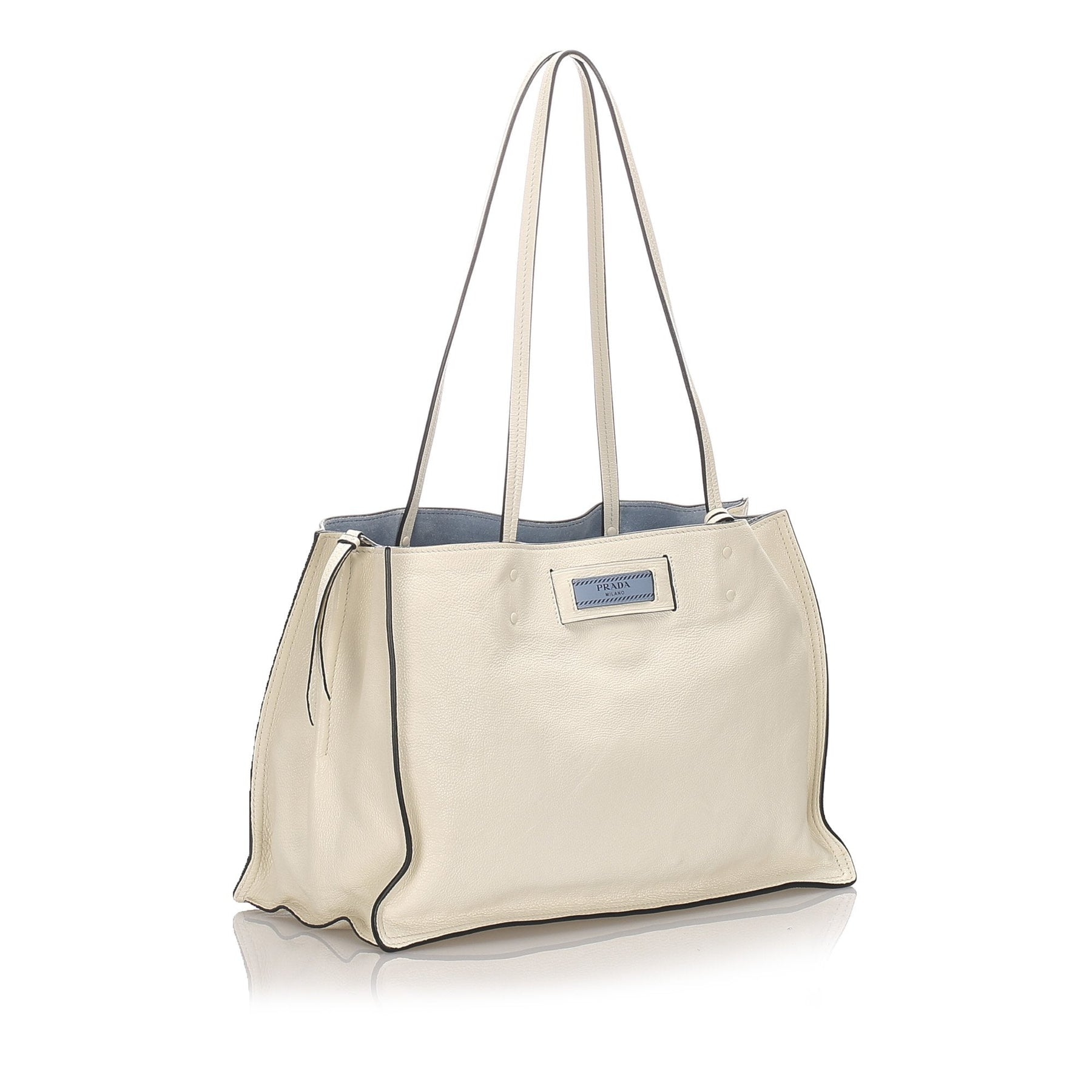 Pre-Loved Prada White Calf Leather Etiquette Tote Bag Italy