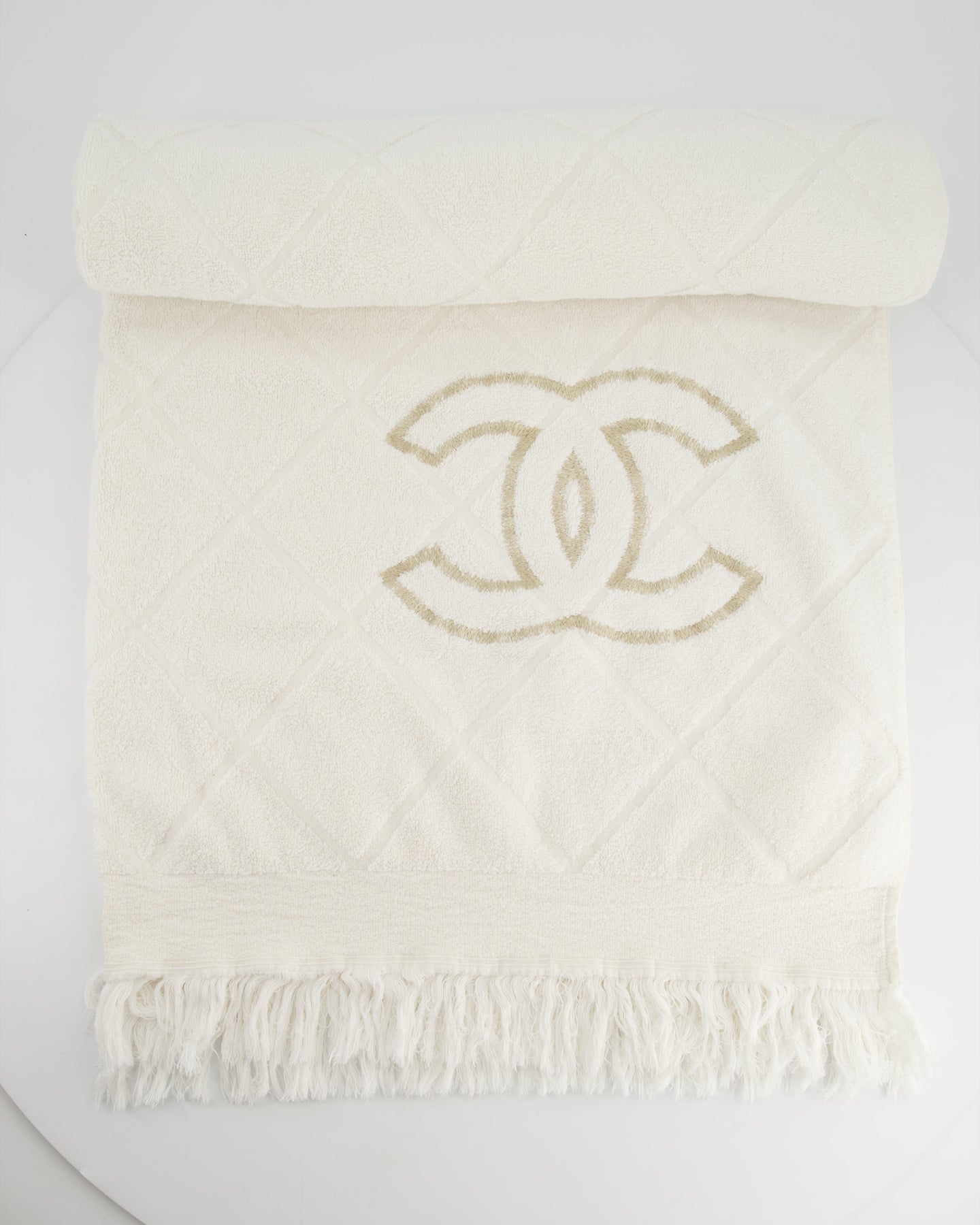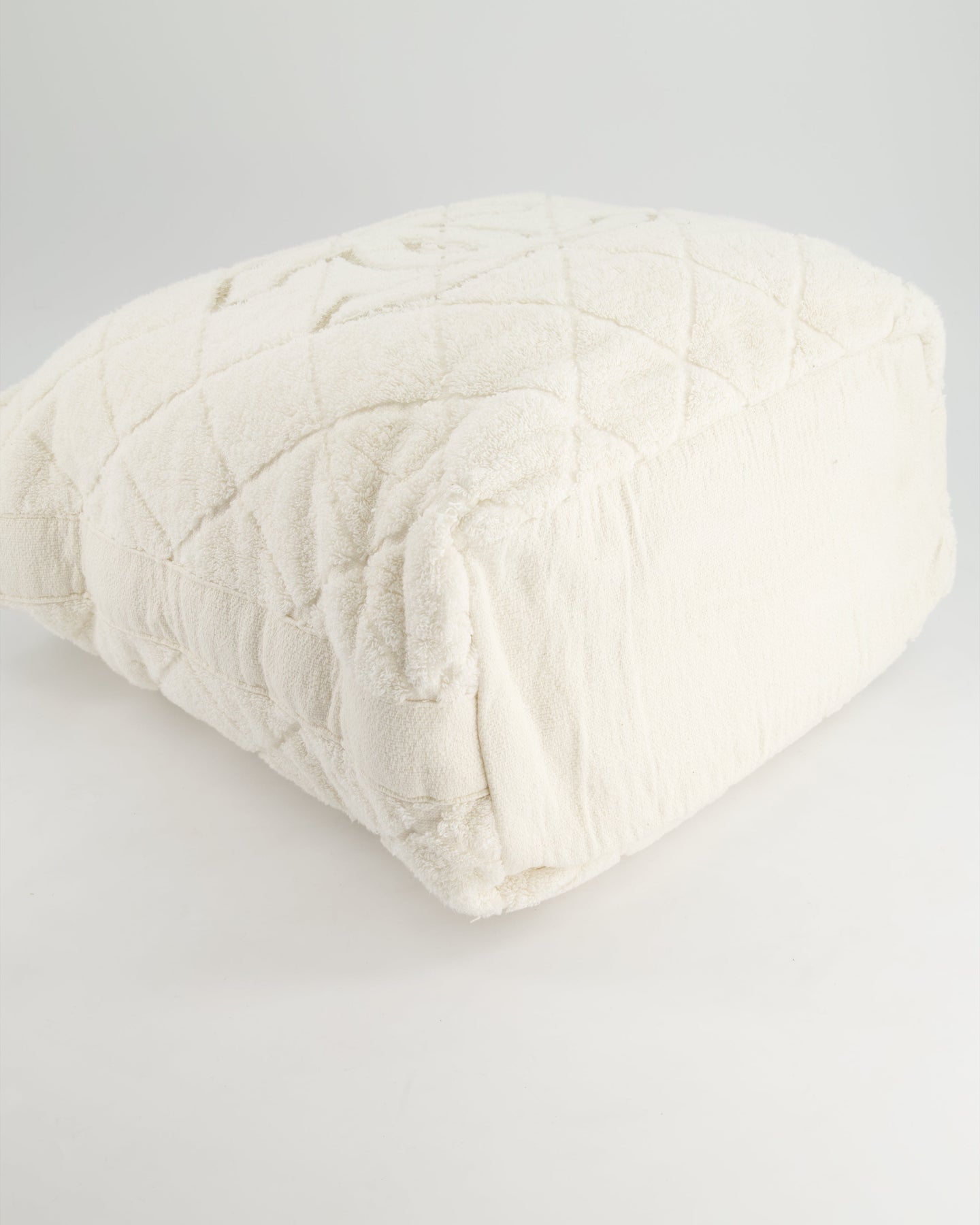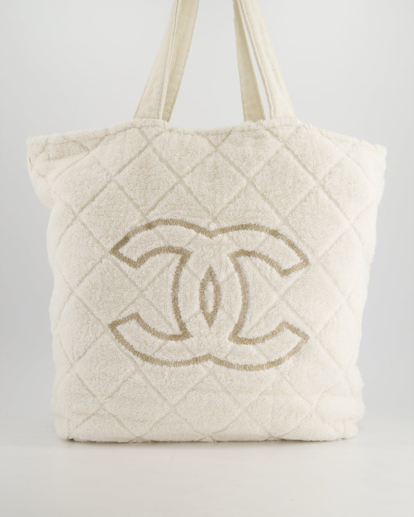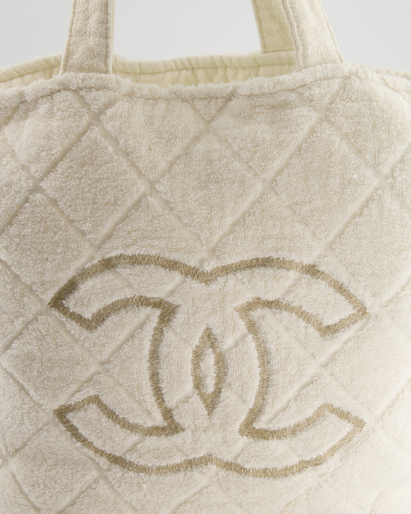 *HOT* Chanel Ivory Terry Beach Set with CC Tote Bag, Towel and Small Pouch