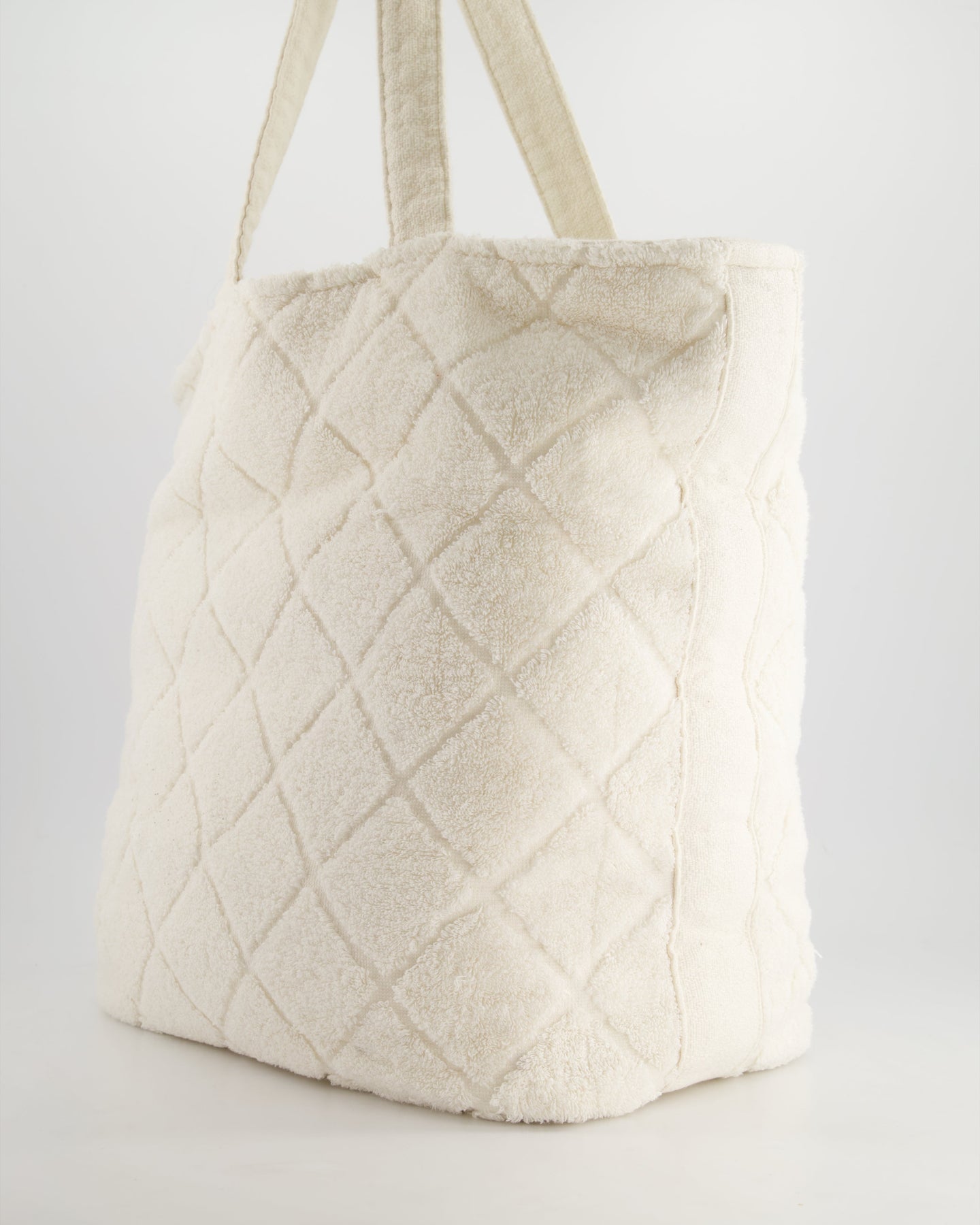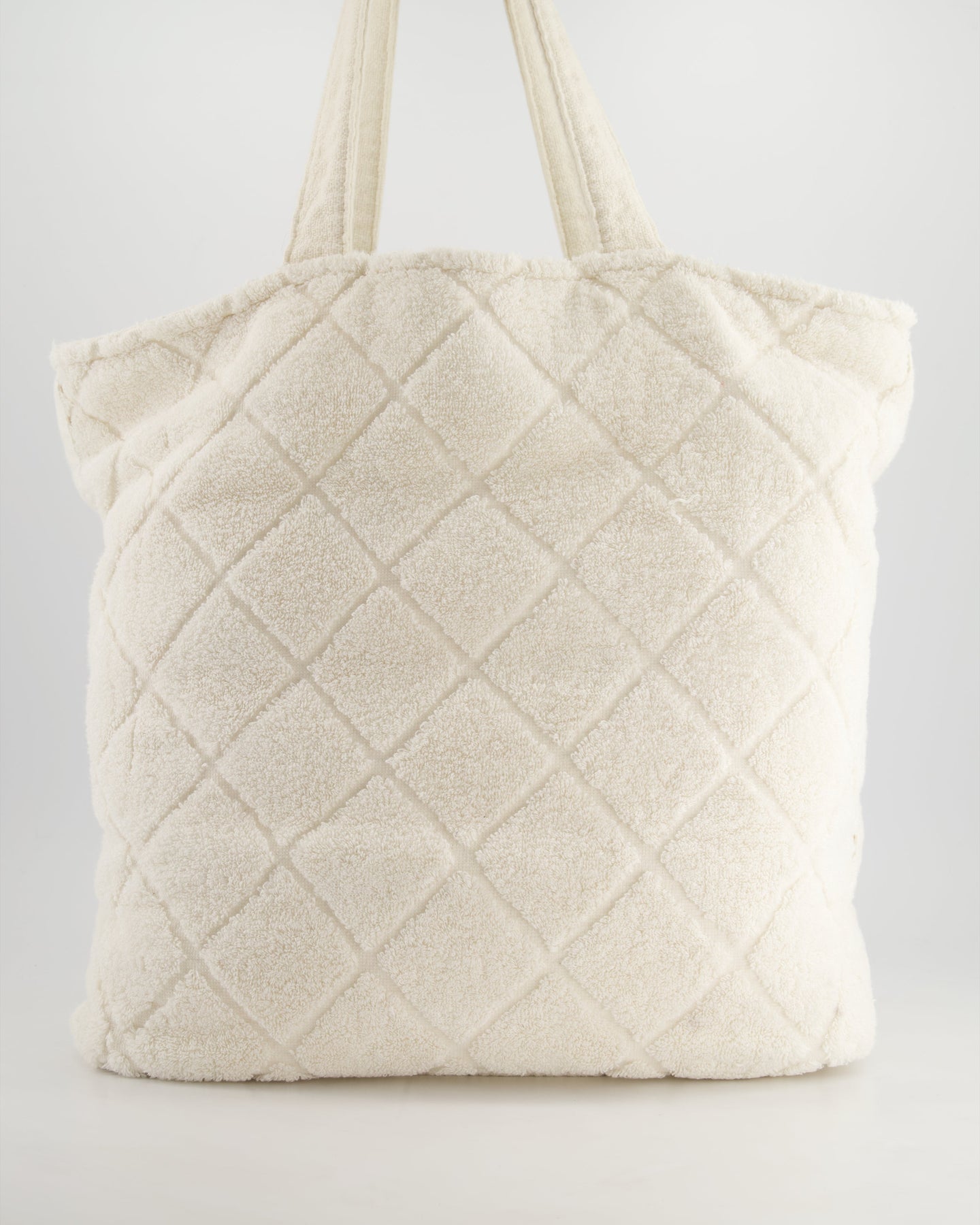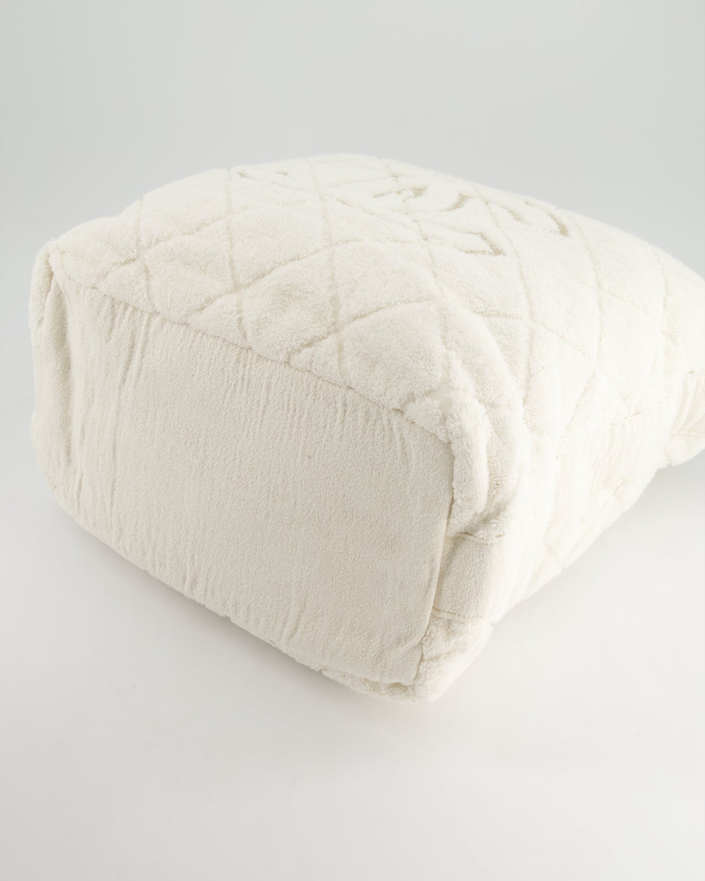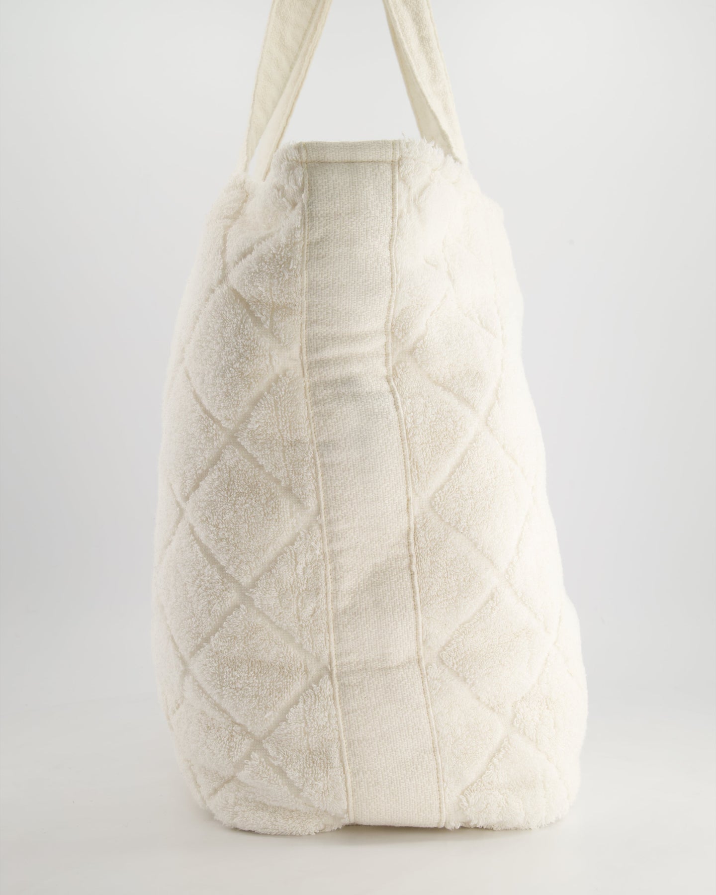 *HOT* Chanel Ivory Terry Beach Set with CC Tote Bag, Towel and Small Pouch