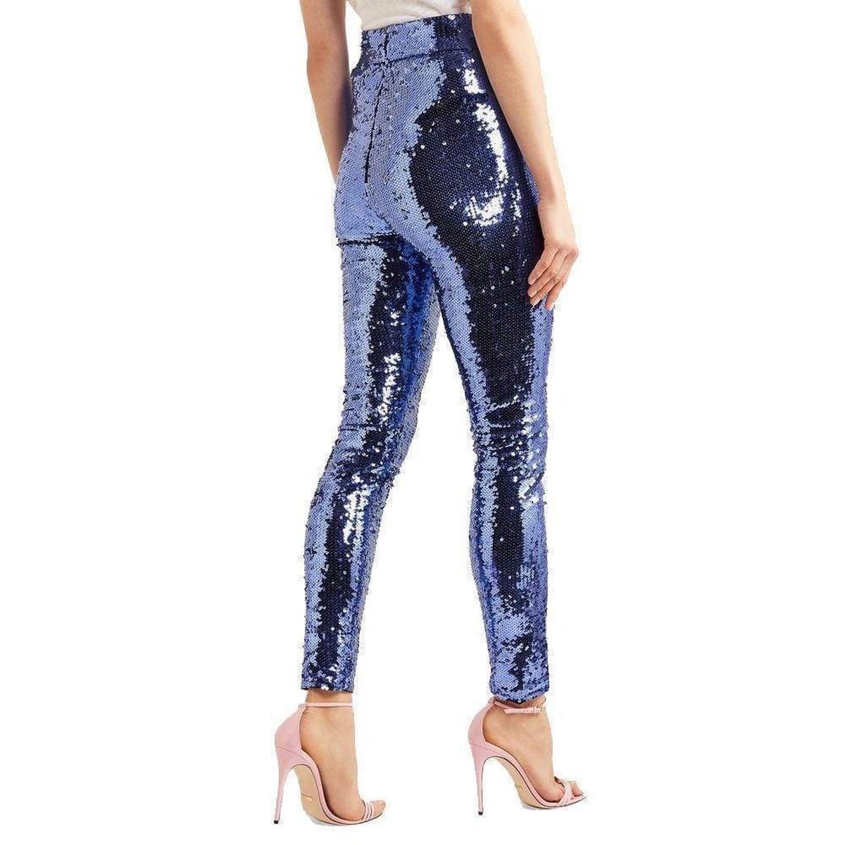 Made from tulle, these leggings are saturated with iridescent purple sequins that appear to dance beneath light.