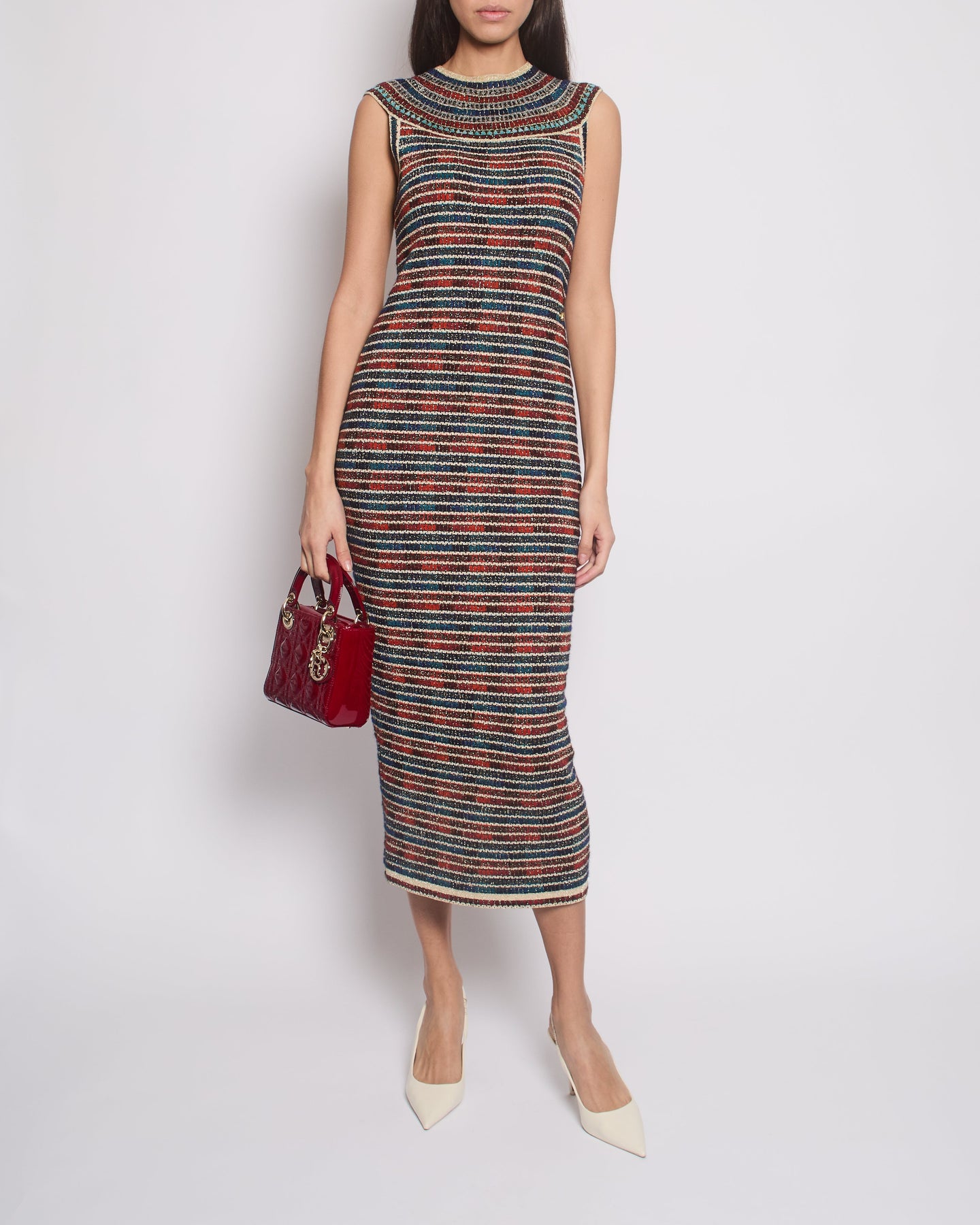 *RARE* Chanel 19A Egypt Collection Metallic Gold, Red and Blue Sleeveless Knitted Midi Dress Size FR 34 (UK 6) RRP £2,150
