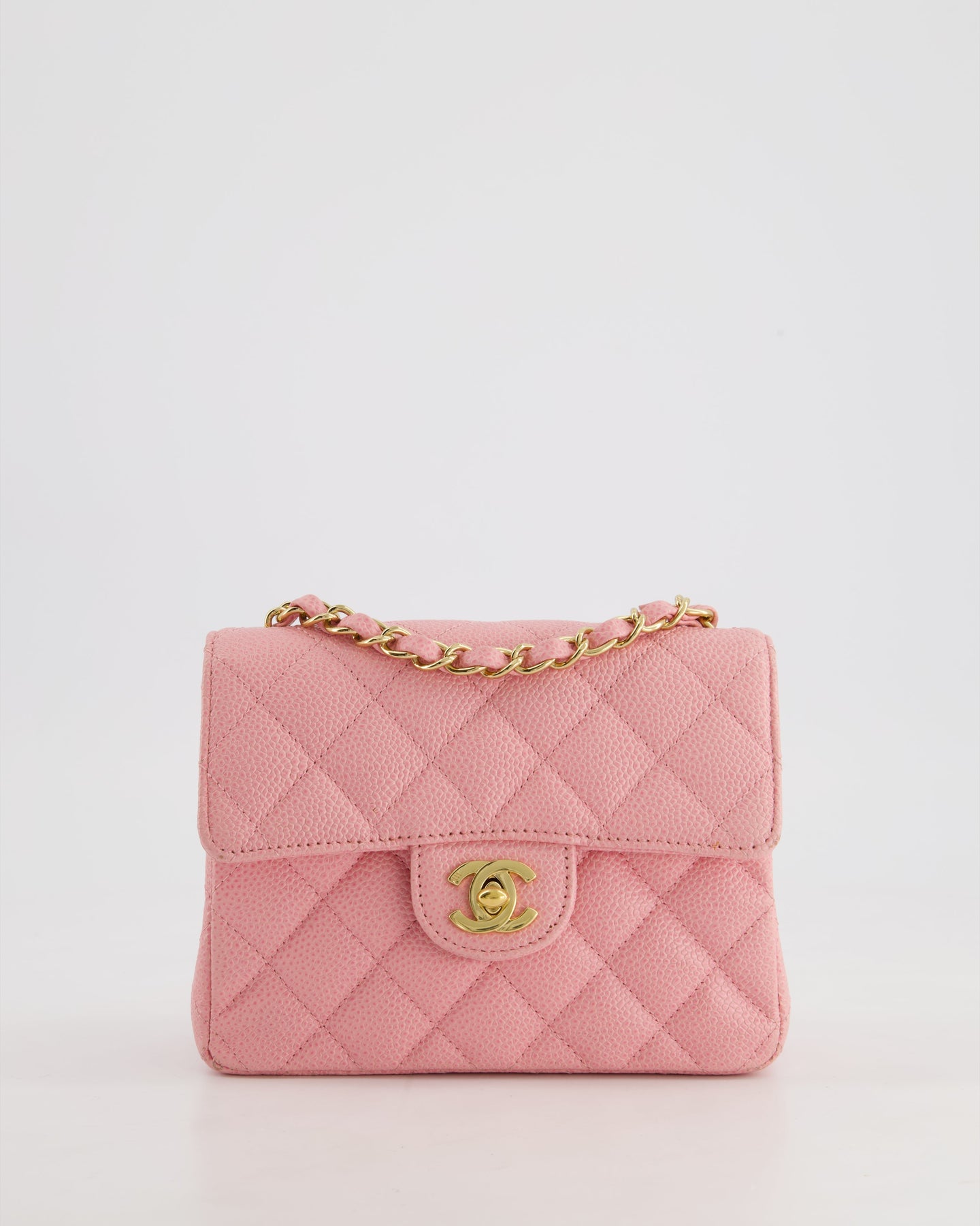 *RARE* Chanel Pink Mini Square Flap Bag in Caviar Leather with 24K Gold Plated Hardware