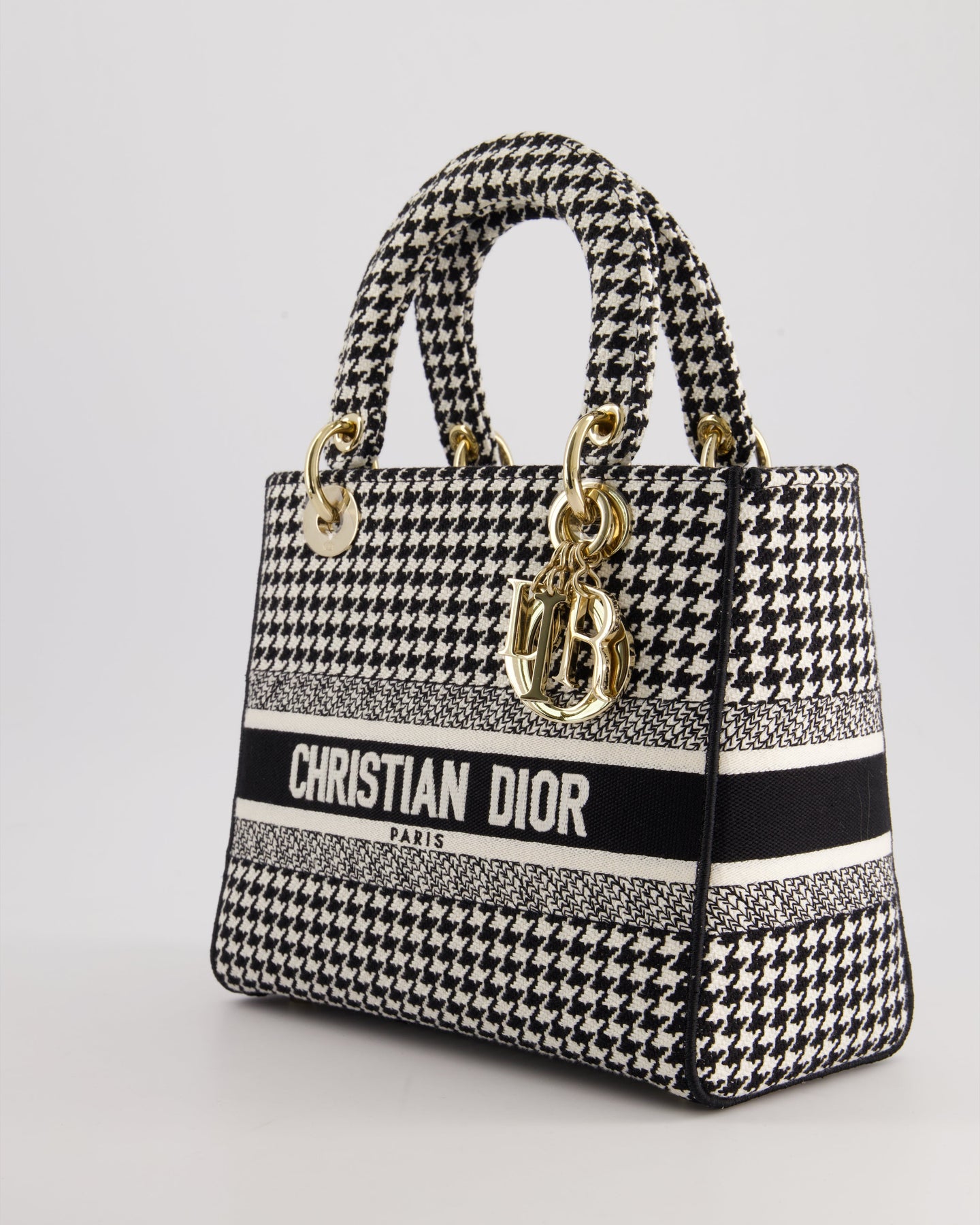 *RARE* Christian Top quality Dior Black & White Houndstooth Medium Lady Top quality Dior Bag in Canvas with Champagne Gold Hardware