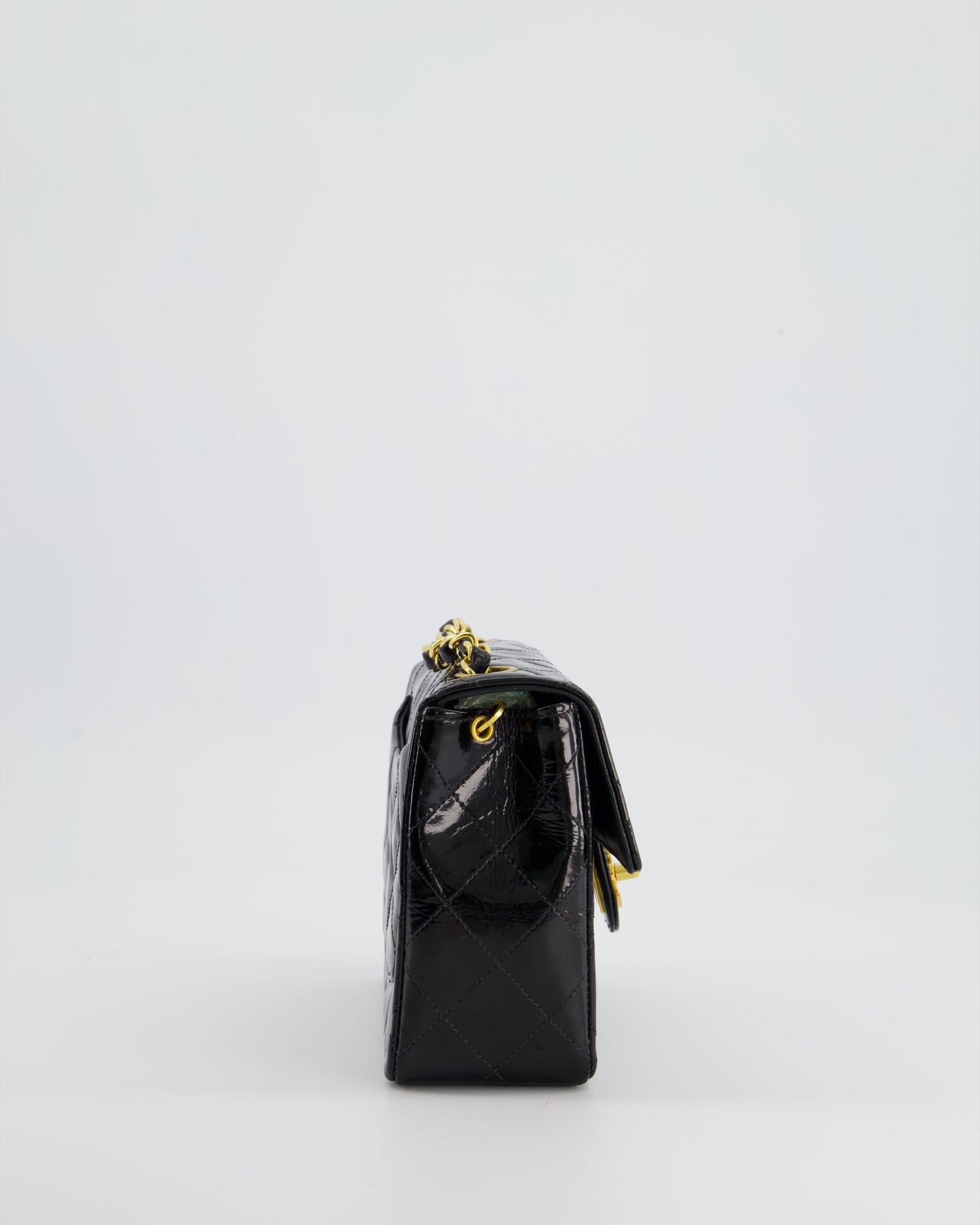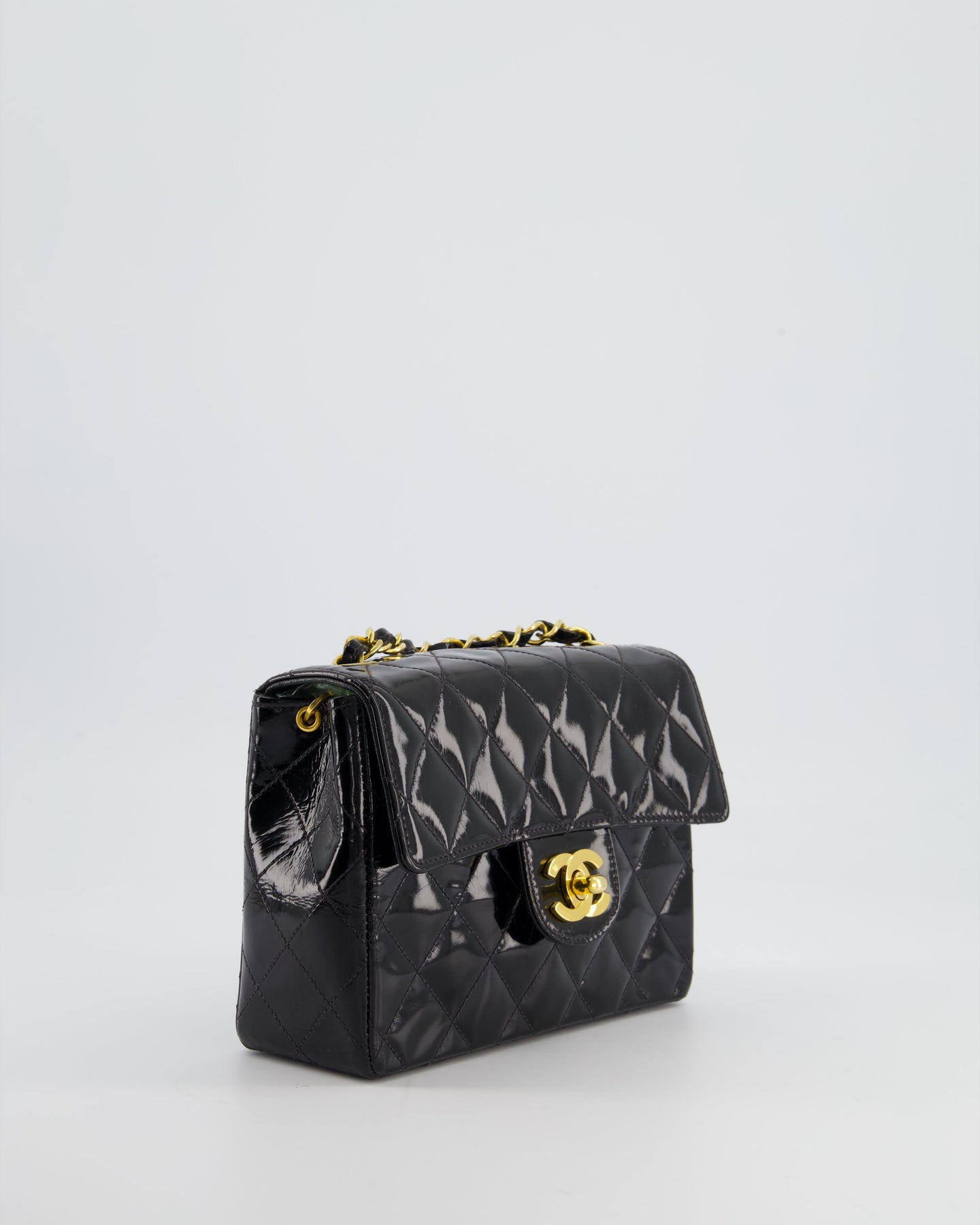 *RARE* Chanel Vintage Black Mini Square Flap Bag in Patent Leather with 24k Gold Hardware