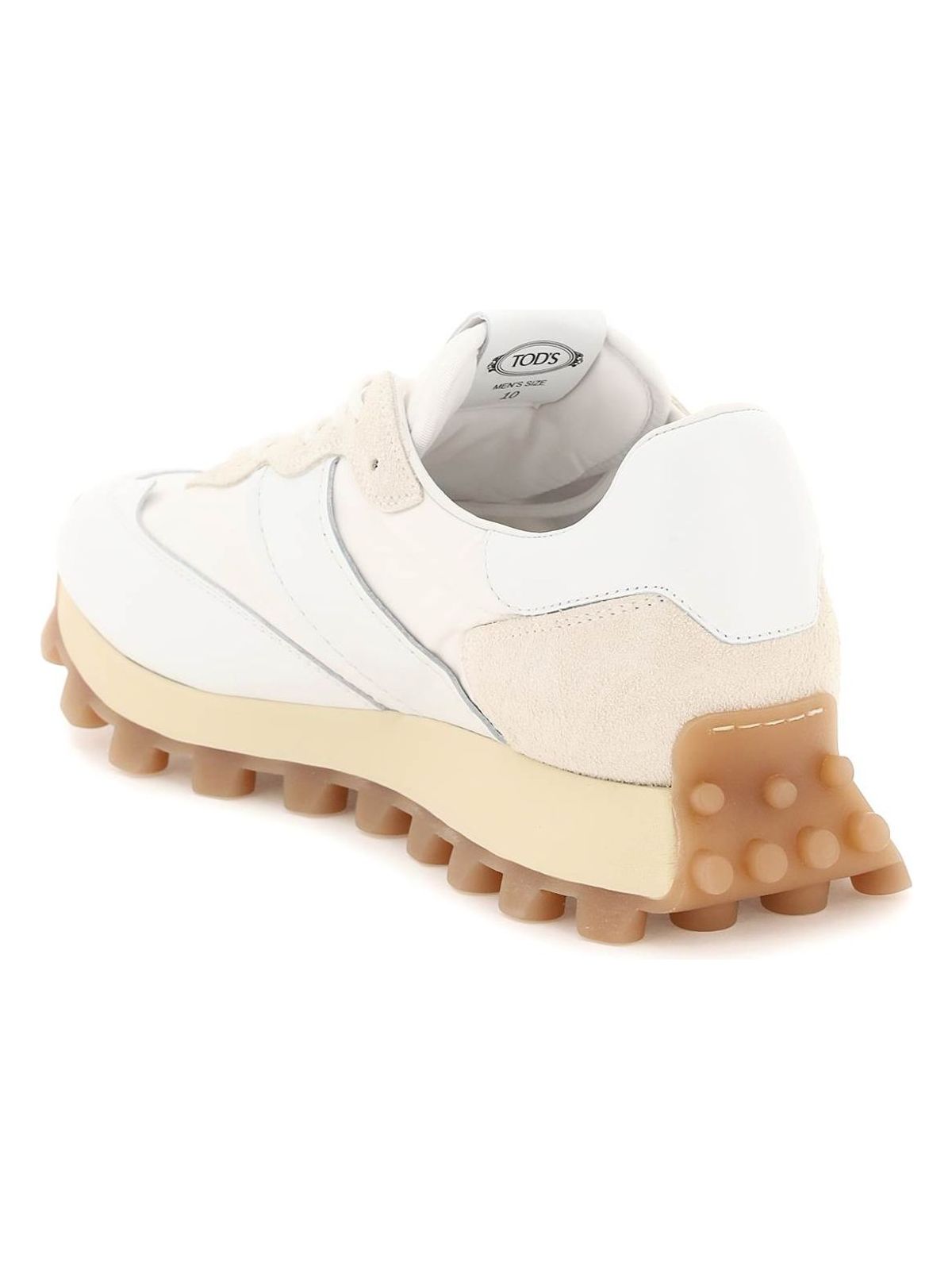 Check out these stylish sneakers with technical fabric inserts, suede details, and a round toeline. The sole features rubber studs for extra grip, making them both fashionable and practical for everyday wear.