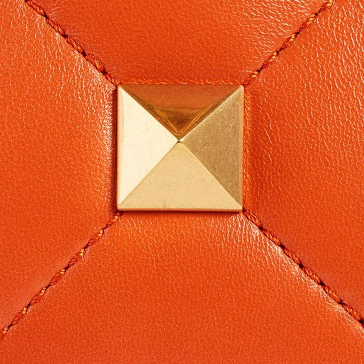 Expertly crafted in Italy from soft nappa leather, The Top Handle Bag is defined by its rhombus-quilted texture with tone-on-tone stitching and maxi stud embellishment in antique brass. Styled with a detachable, sliding chain and another detachable leather strap, it can be worn over the shoulder or carried by hand. The two main compartments are secured with twist-lock and magnetic closures. One flat pocket inside.