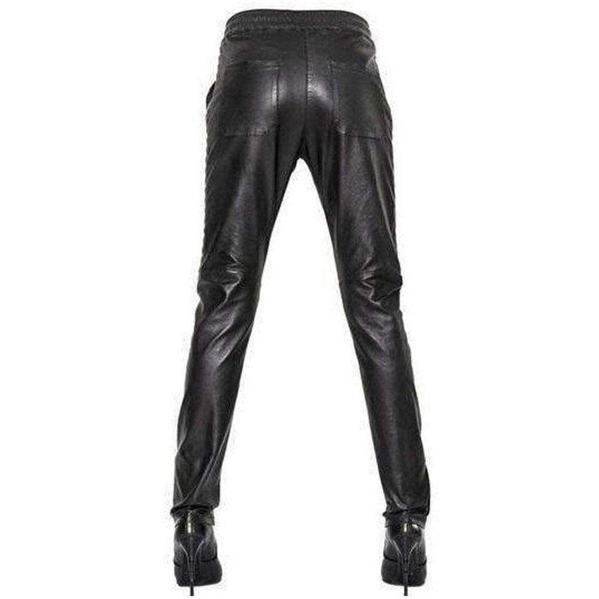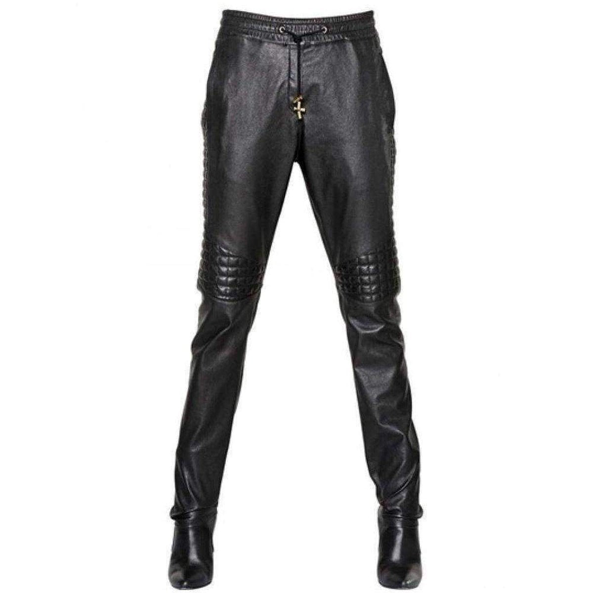 This quilted leather pants tapered through the leg, and sloutchy at the hip, make it a very comfortable piece. Wear it with an animal-print top, a leather jacket and high-heeleds pumps for a rock-and-roll and ethnic look