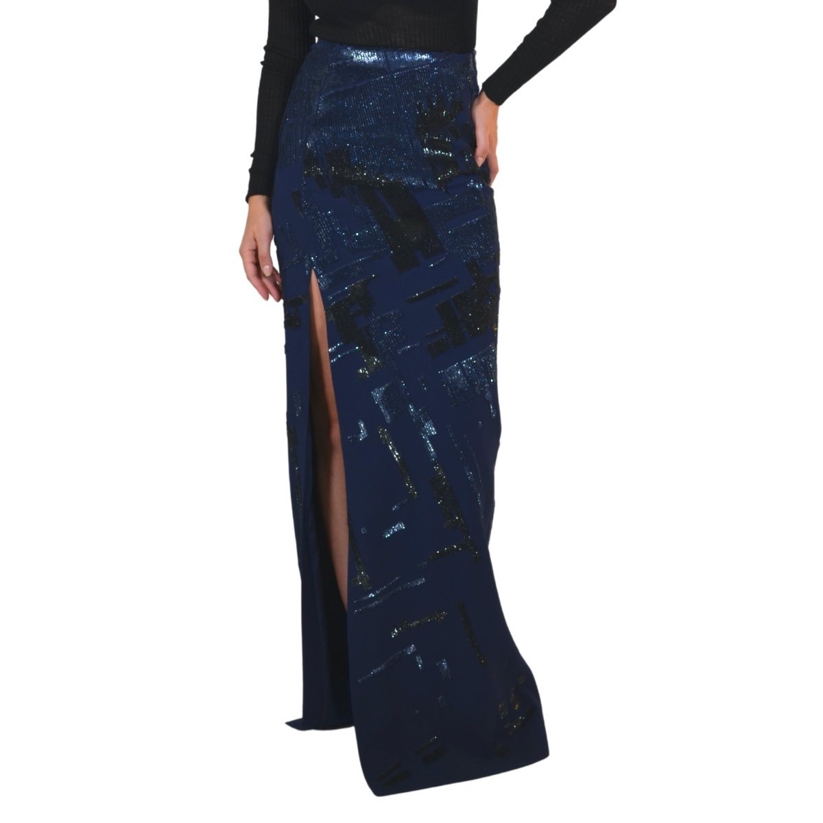 A maxi skirt by Mugler, accented with sequins details and sexy slit.