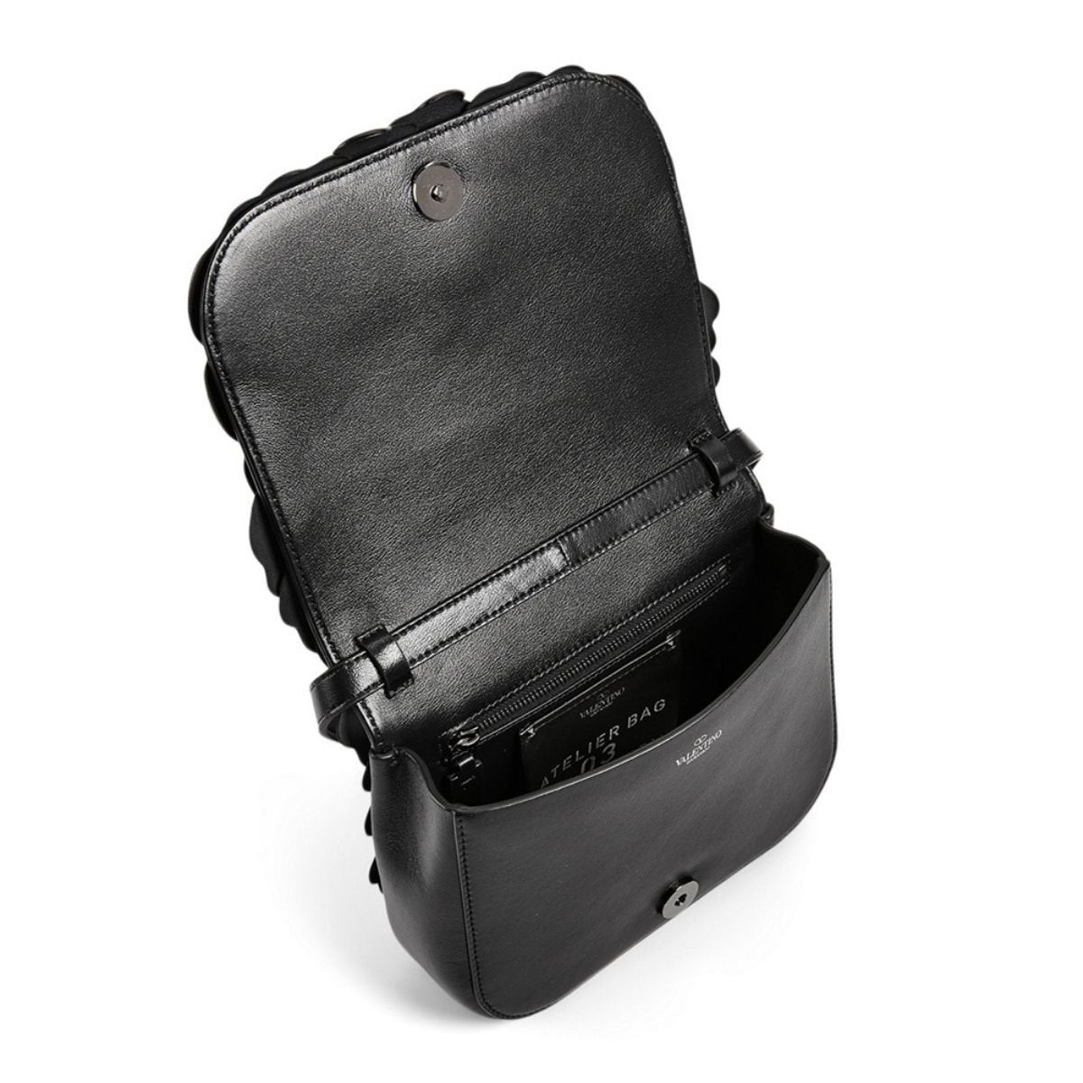 Scalloped leather petals are layered on top of each other, creating a 3D rose effect on the front of this shoulder bag. Equipped with a removable, adjustable strap, this artfully crafted bag is fitted with one zippered pocket inside.
