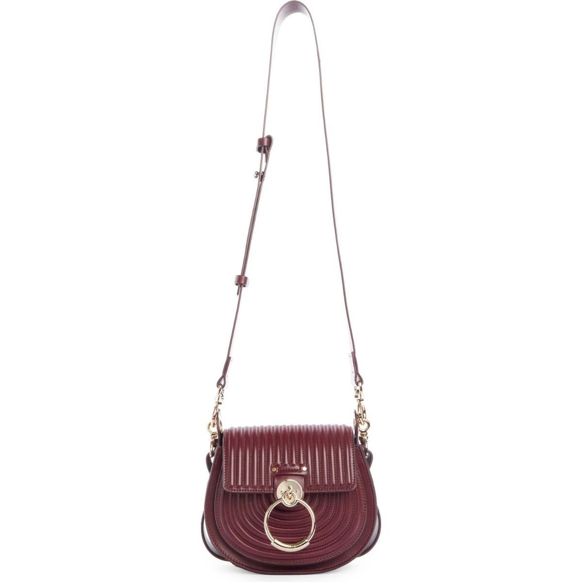 Gold-tone hardware.