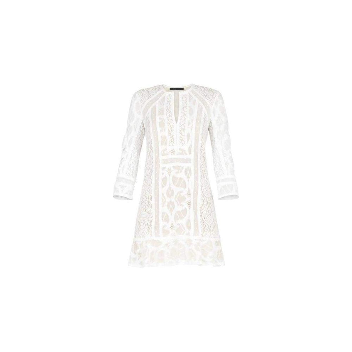 Intricate lace-blocking and a delicately ruffled flounce hem make it easy to show off your playful side while still being refined.