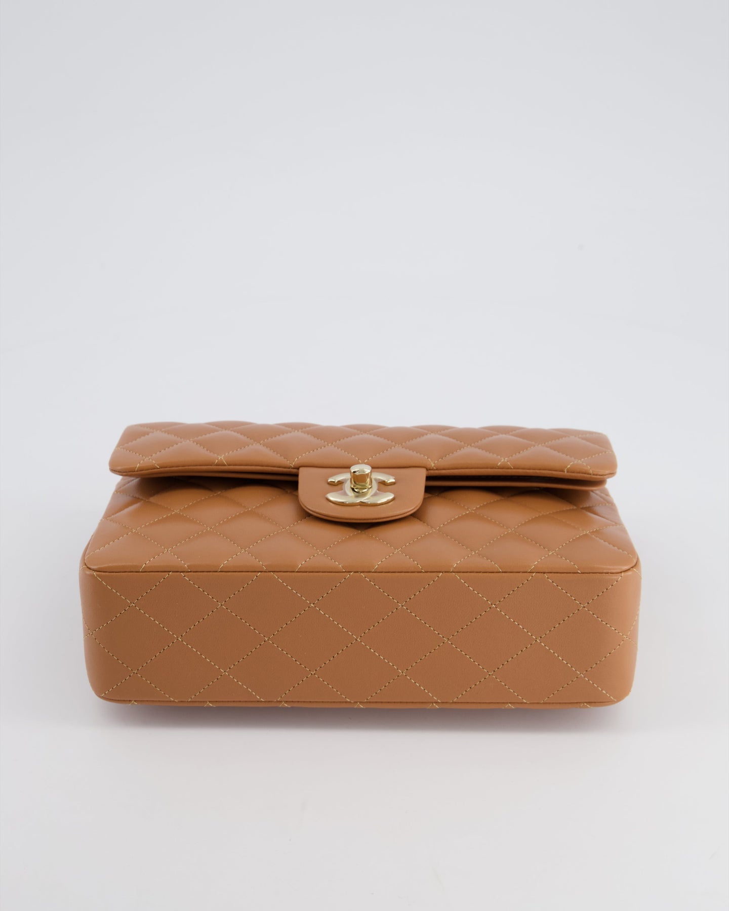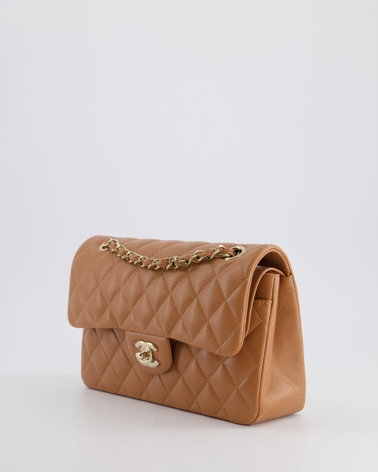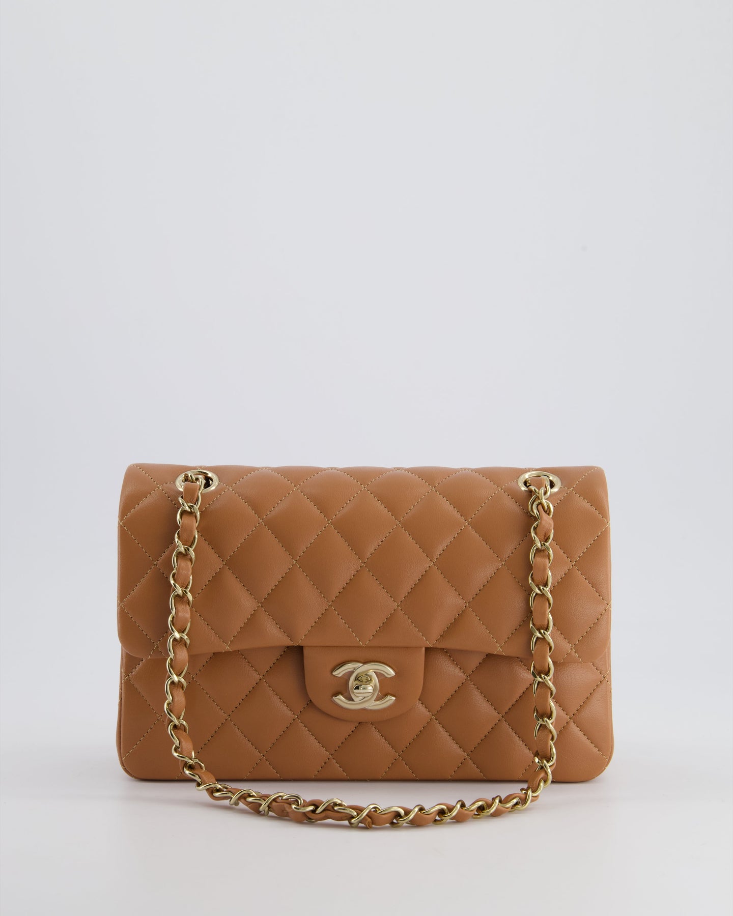 *SUPER RARE* Chanel 22S Caramel Brown Small Double Flap Bag in Lambskin Leather with Champagne Gold Hardware