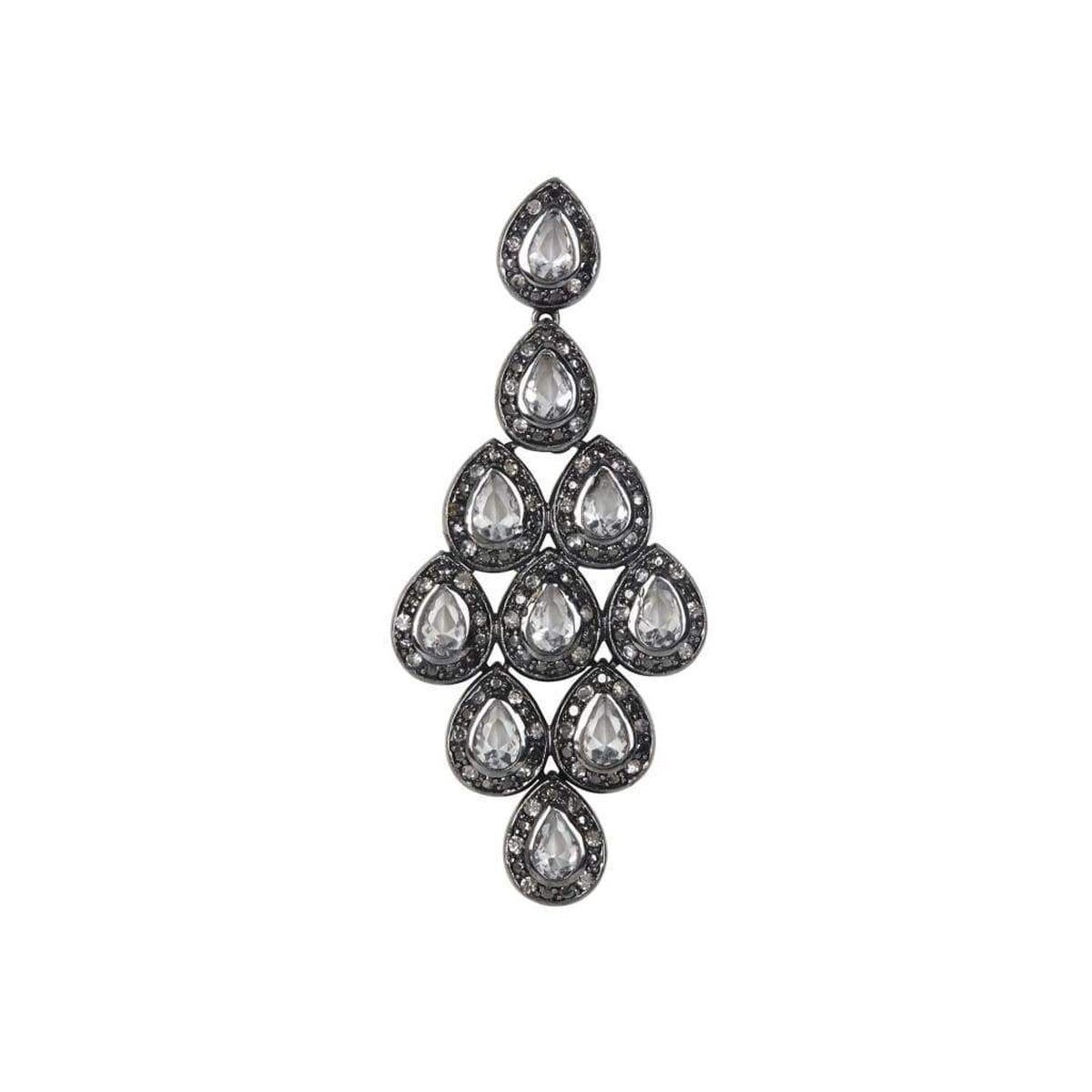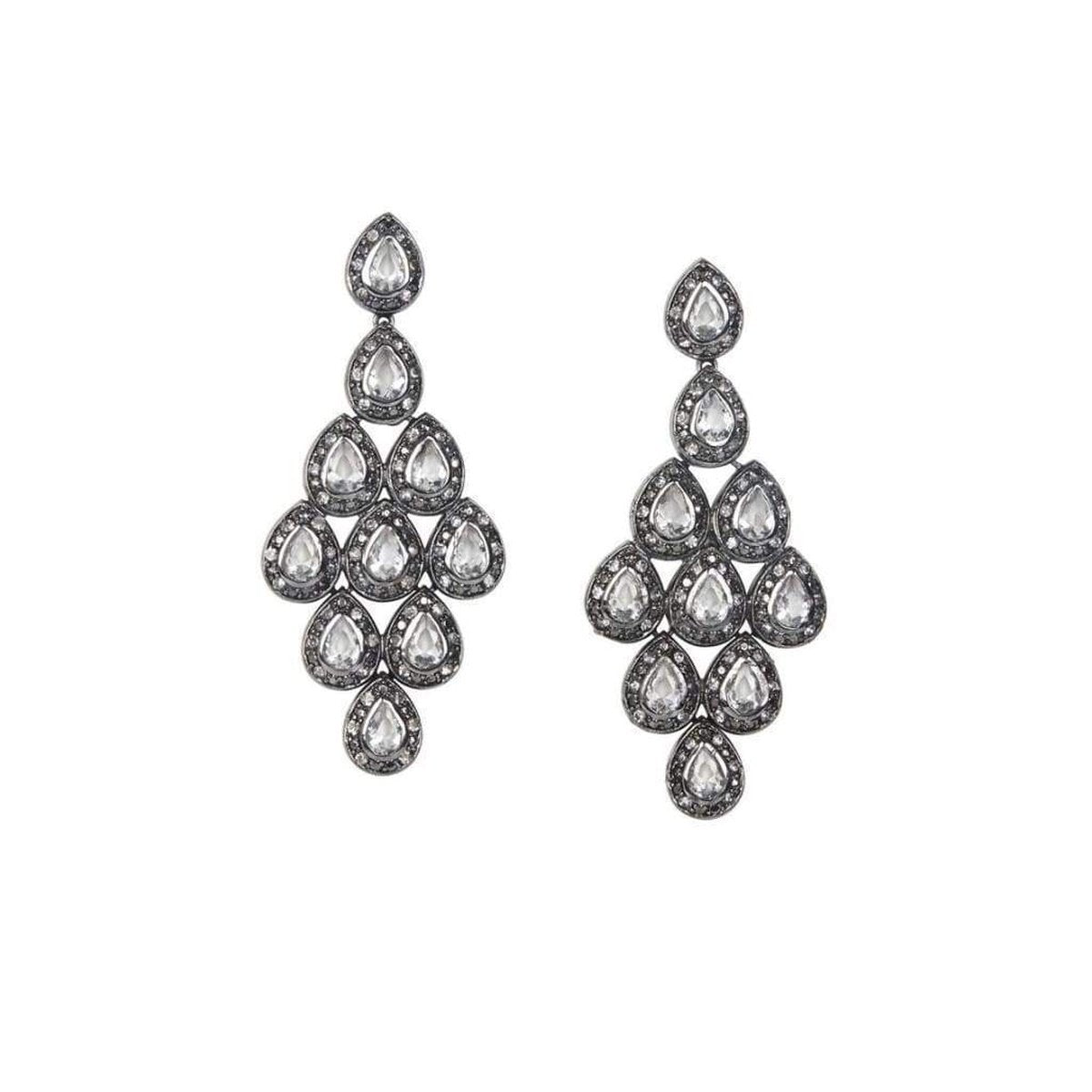 Teardrop-faceted gemstones at center of each teardrop with crystal trim.