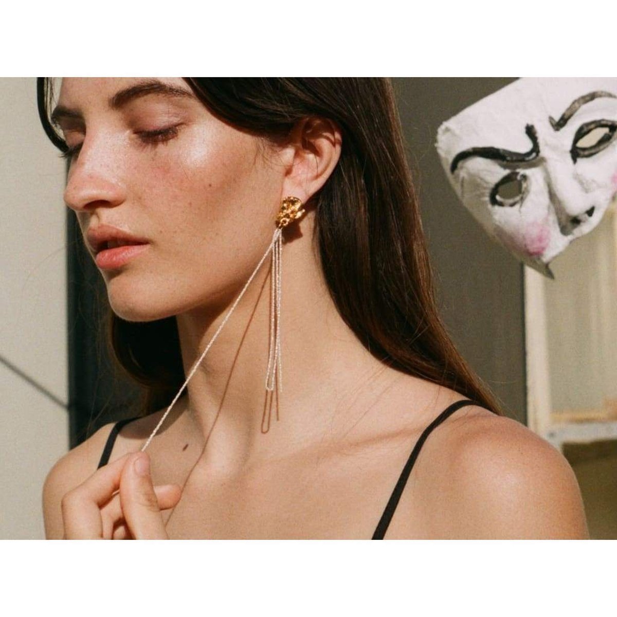 Gold-tone 24kt gold plated bronze and sterling silver The Streaming Tear single earring from Alighieri featuring a post back closure and micro beads. This is a single earring.