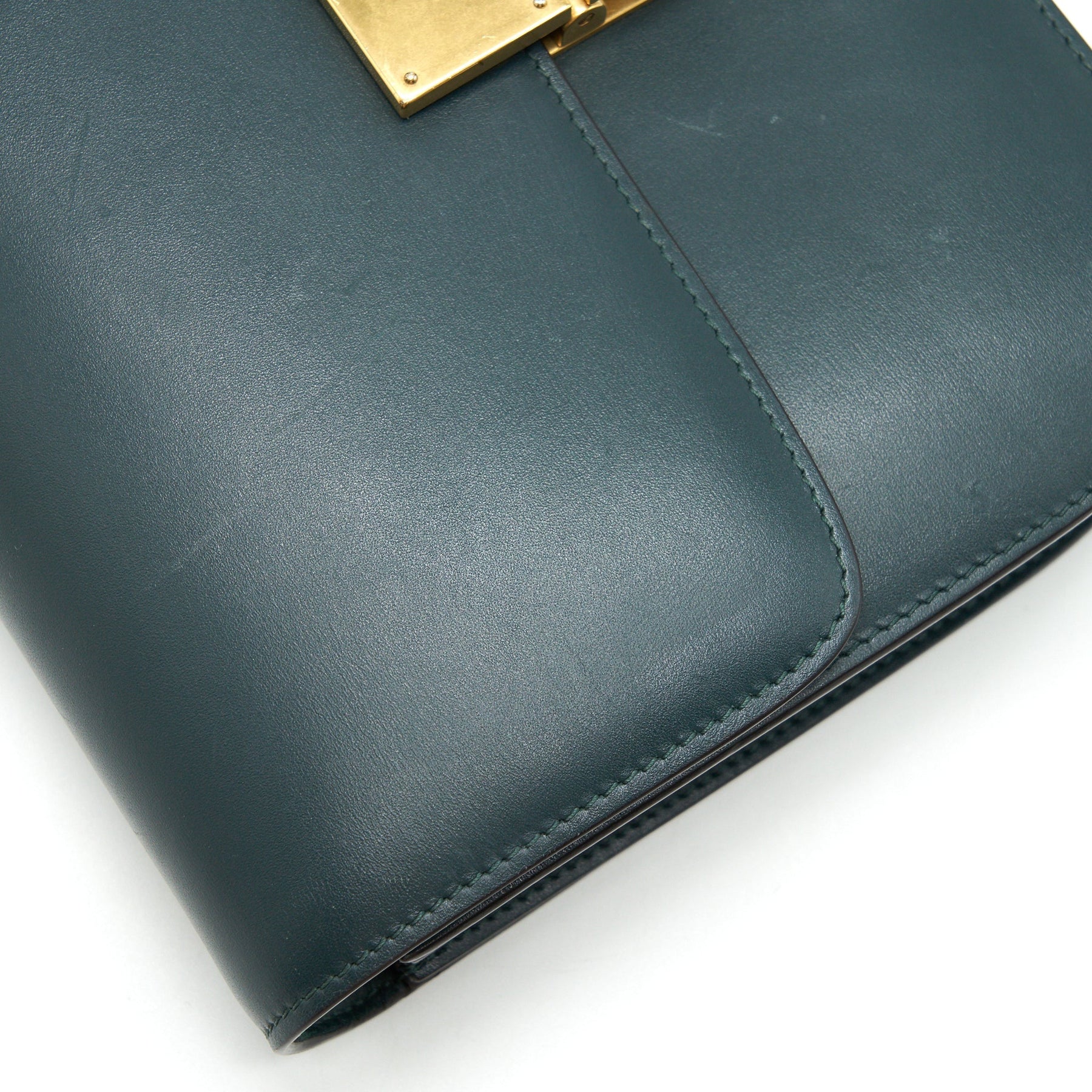 New (This item is in good condition with New on leather and hardware, rubbing under flap, dents inside bag, light New on the strap. )