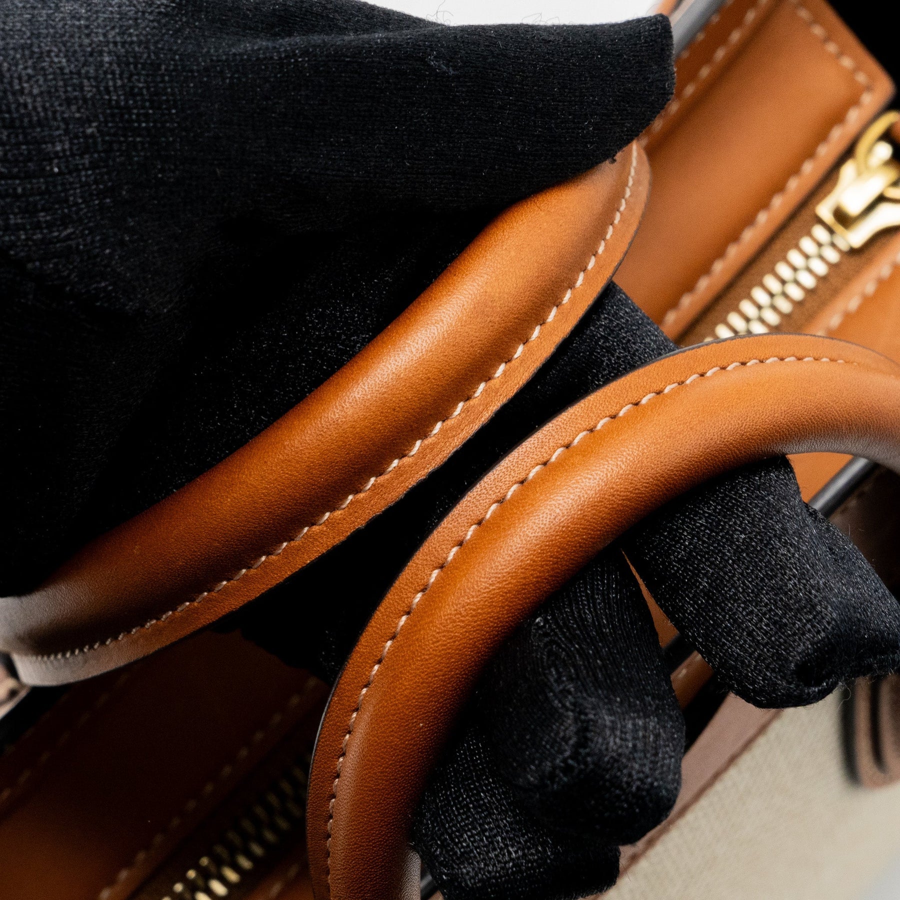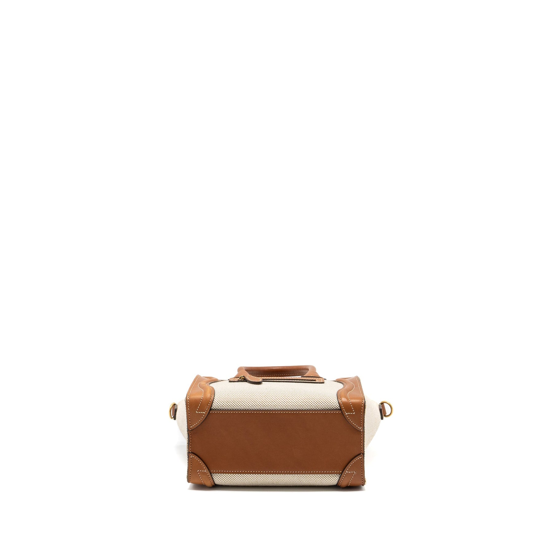 Top Quality Celine Nano Luggage Bag Canvas/Leather Tan/White