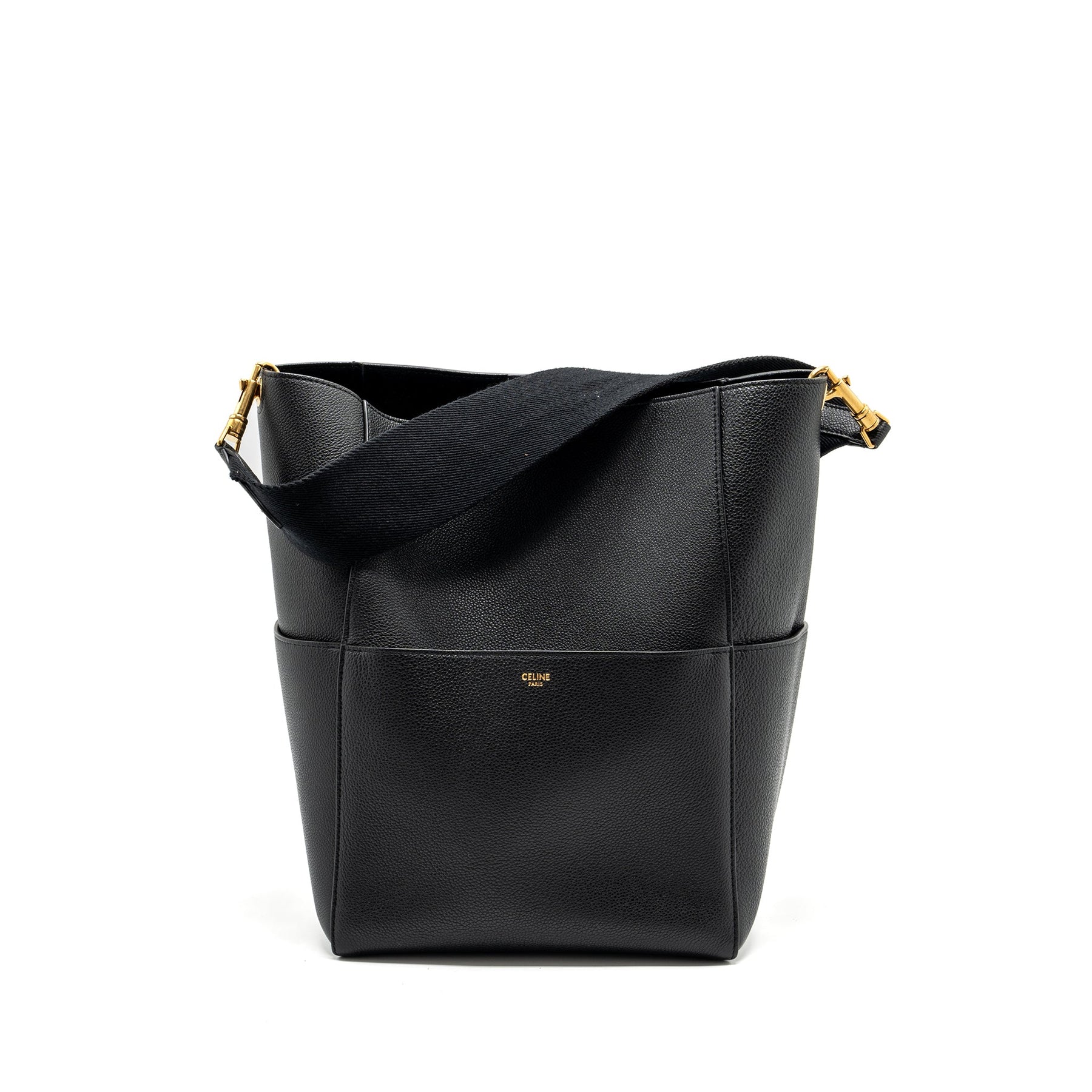 Top Quality Celine Sangle Bucket Bag Grained Calfskin Black