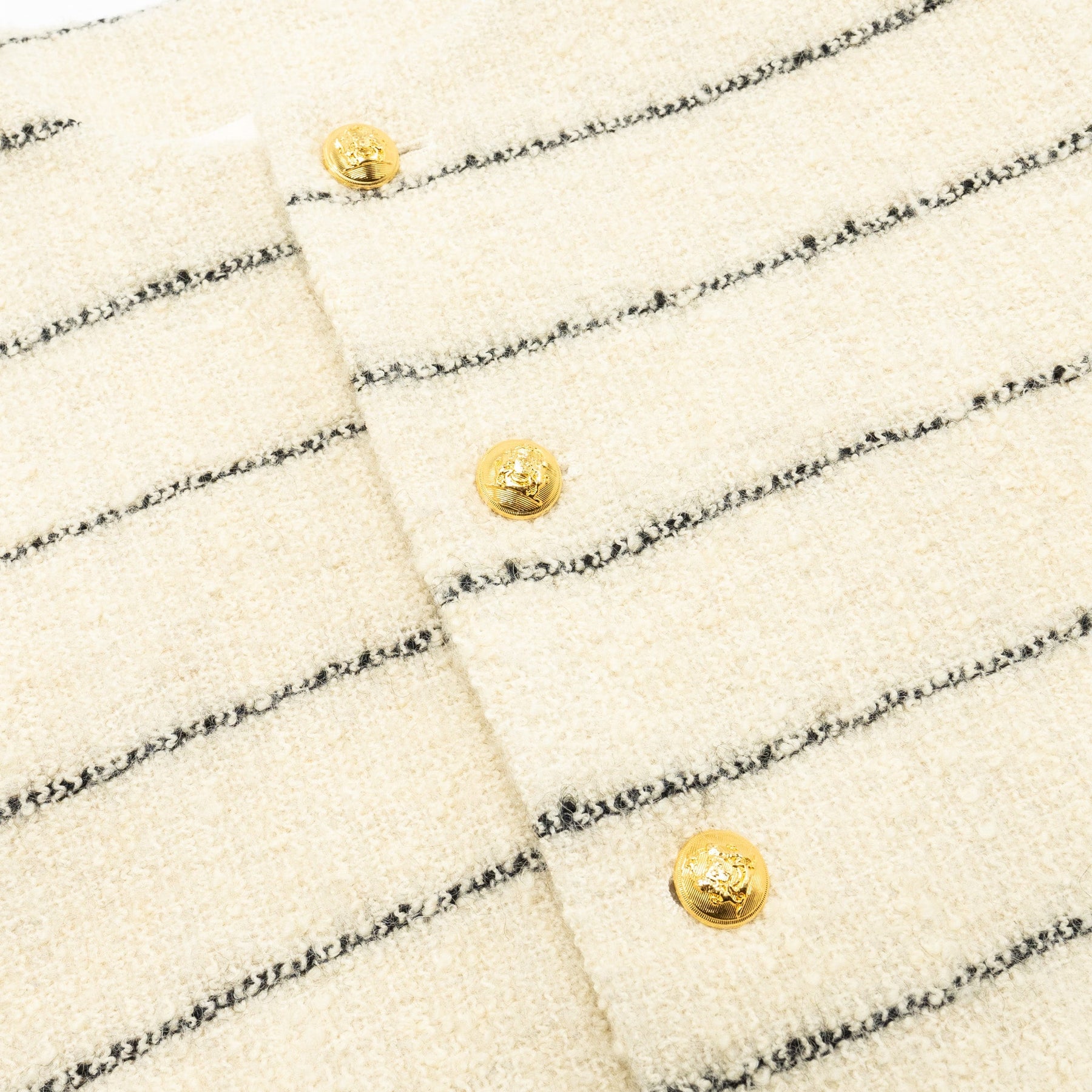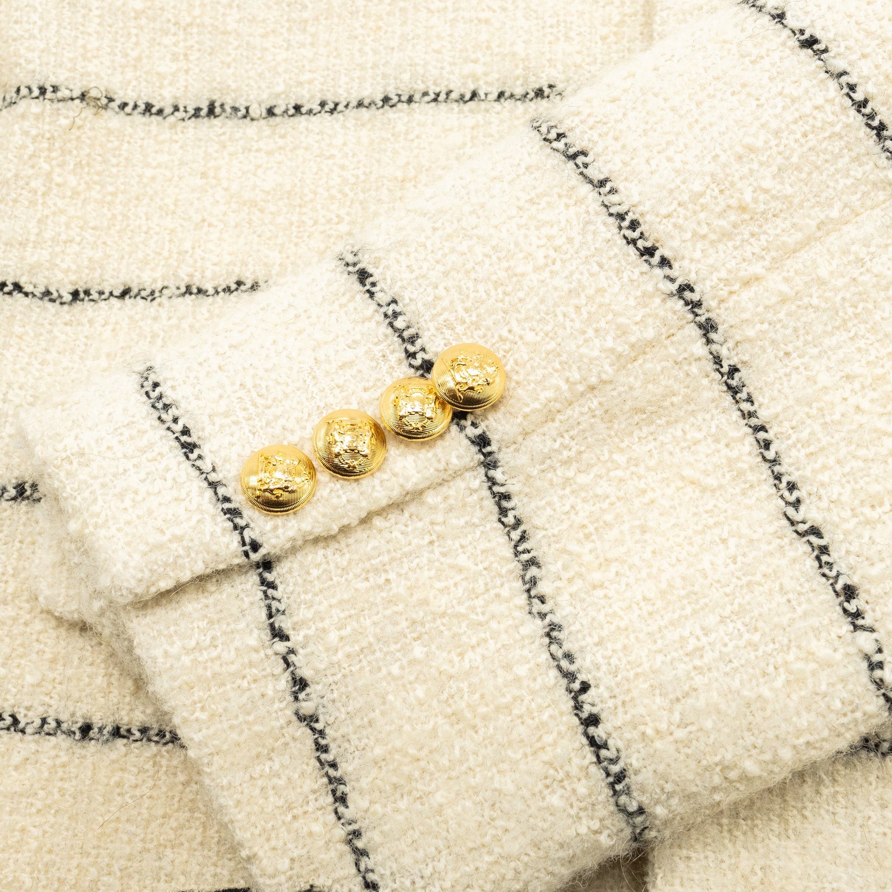 Top Quality Celine size 34 Chasseur Striped Evening Jacket wool / polyamide cream / black