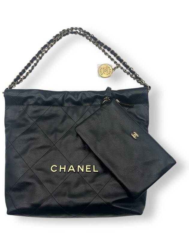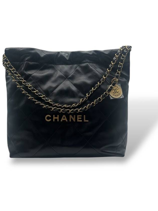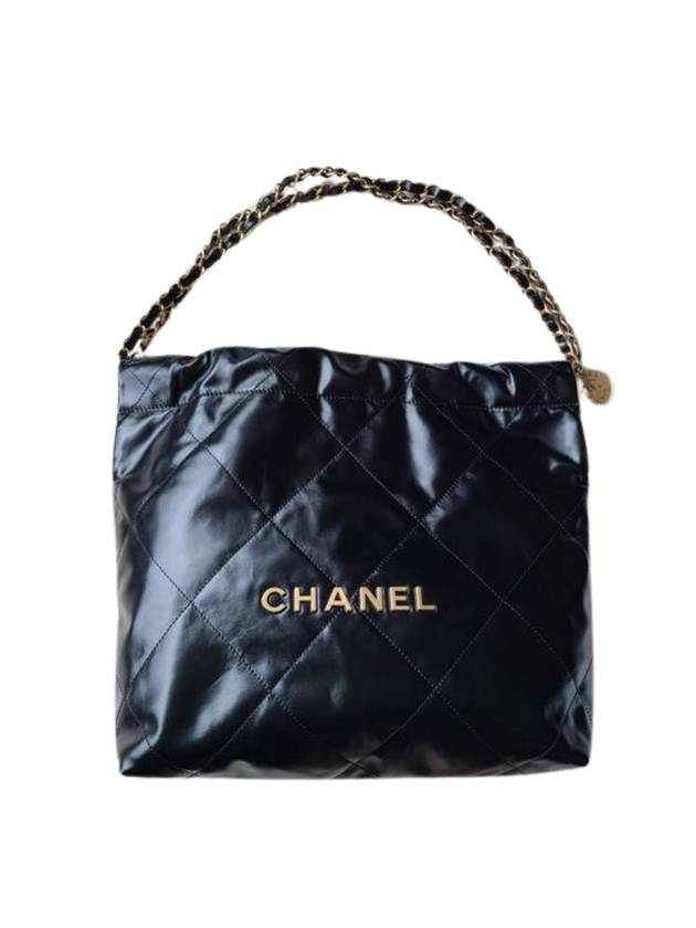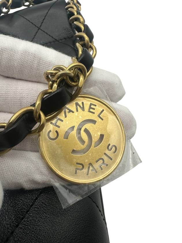 22 Small Shiny Calfskin Bucket Bag Black Chanel
