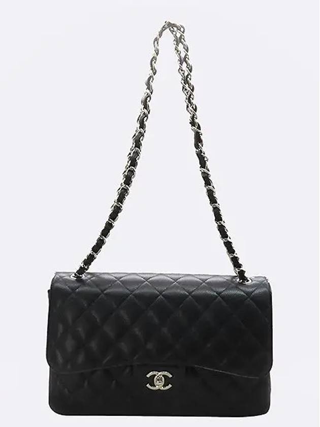 A58600 Caviar silver classic jumbo L size chain shoulder bag Chanel