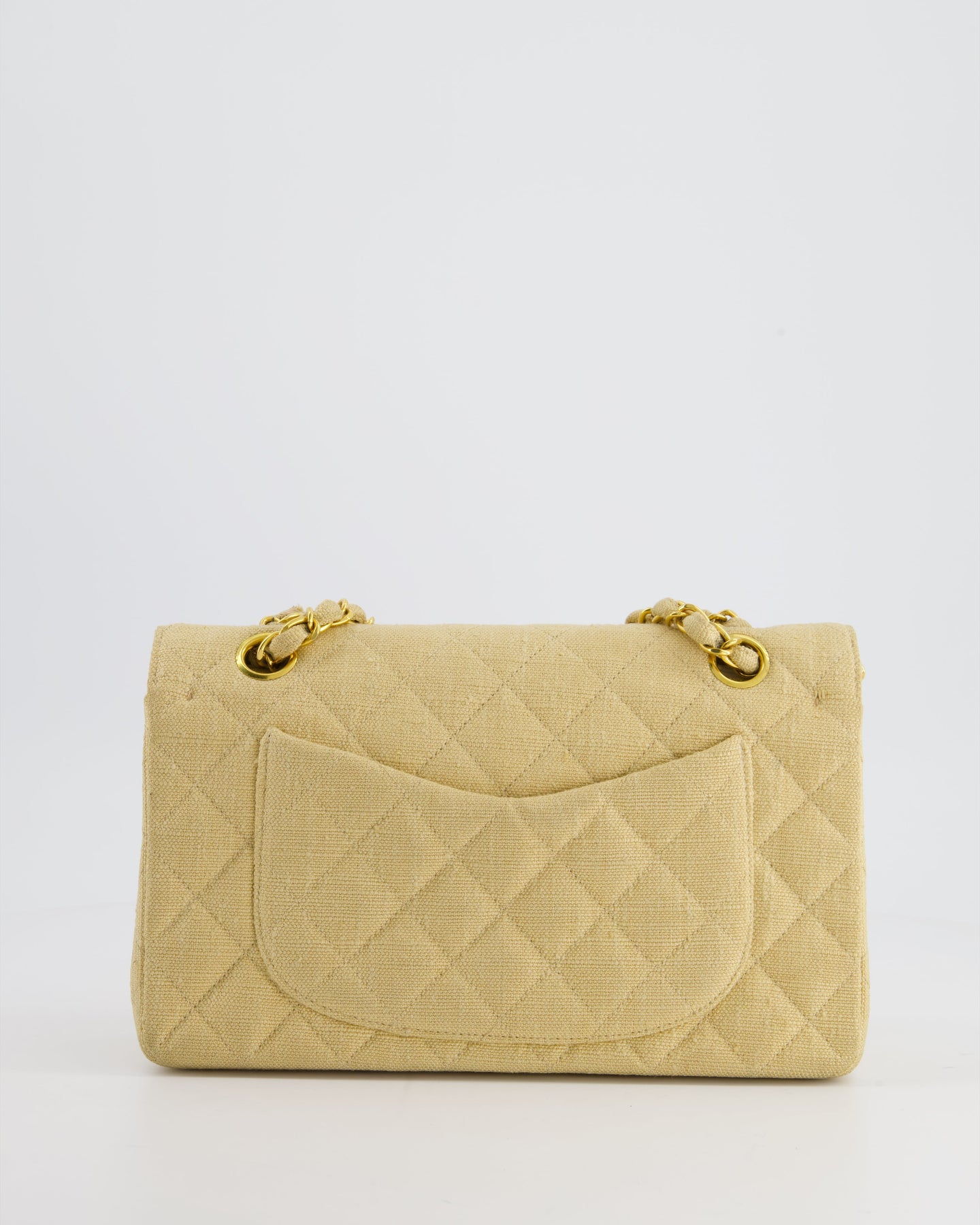 *HOT VINTAGE* Top Quality Chanel Beige Small Fabric Classic Double Flap Bag with 24K Gold Hardware