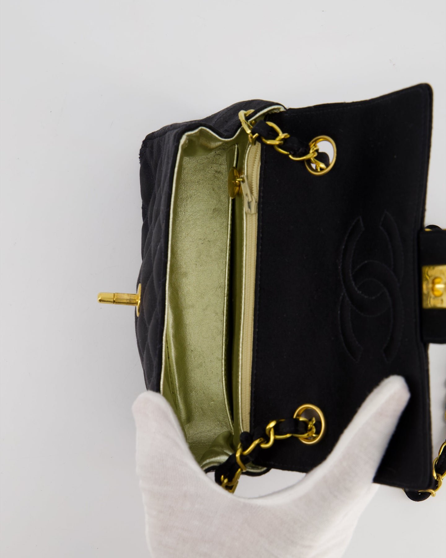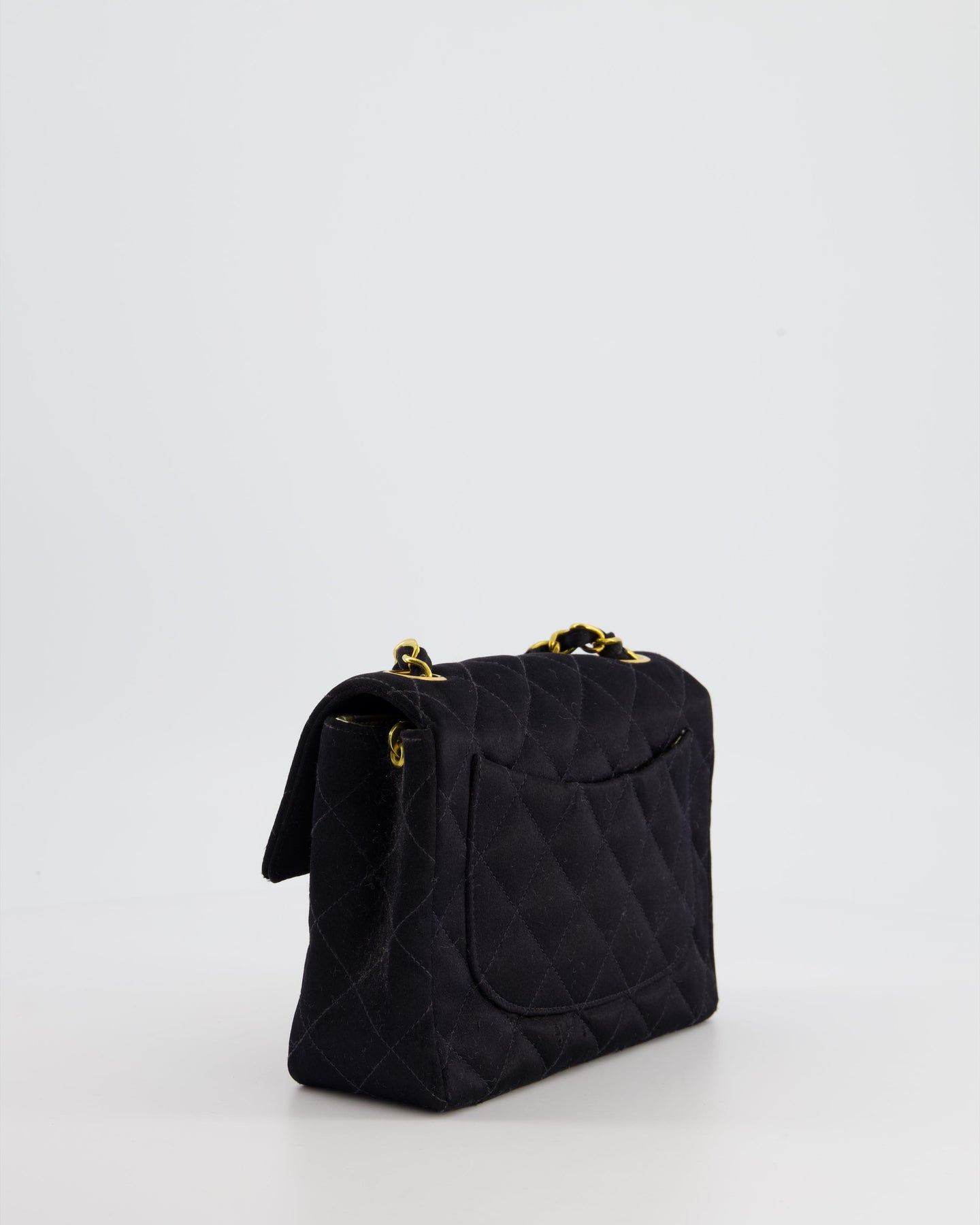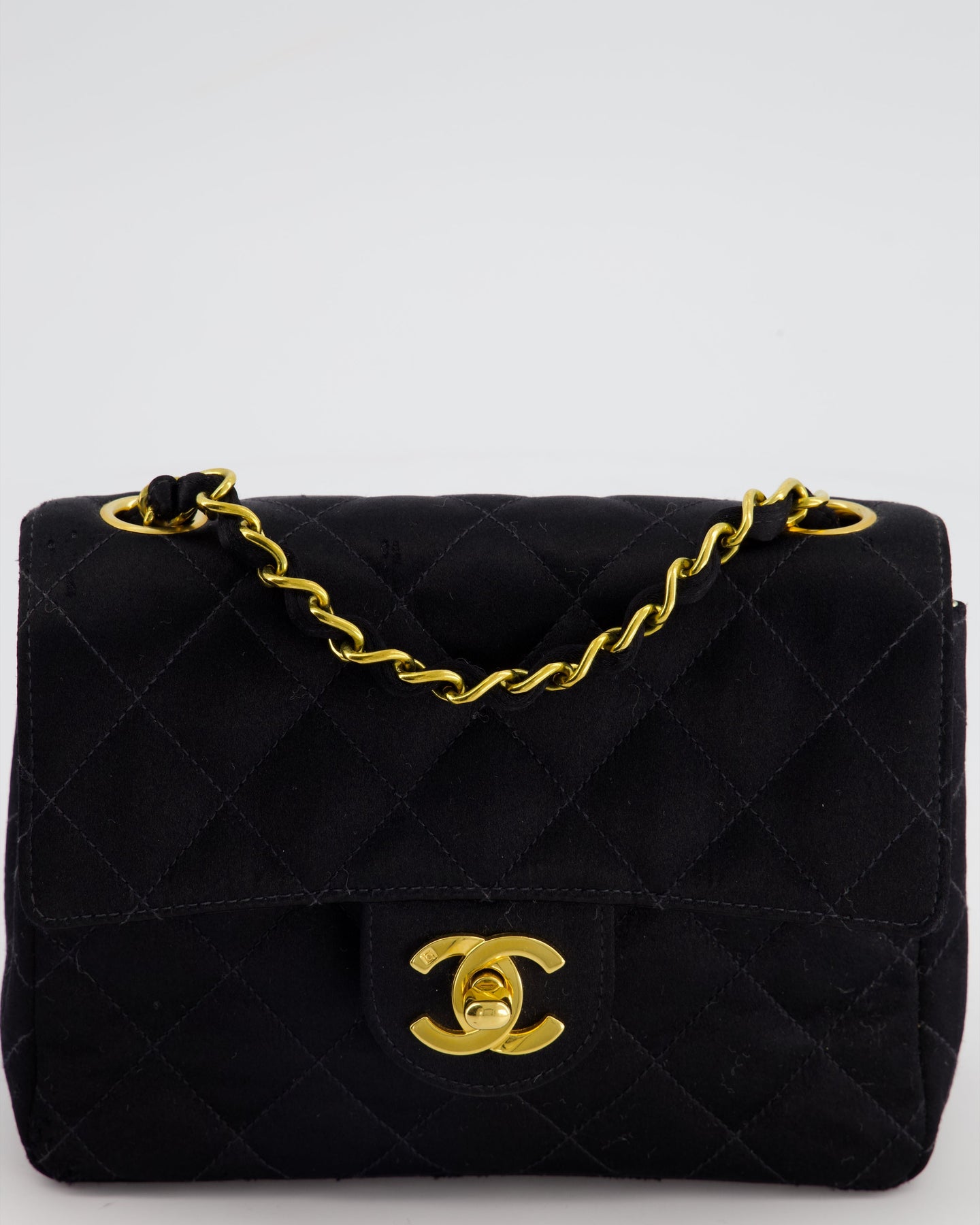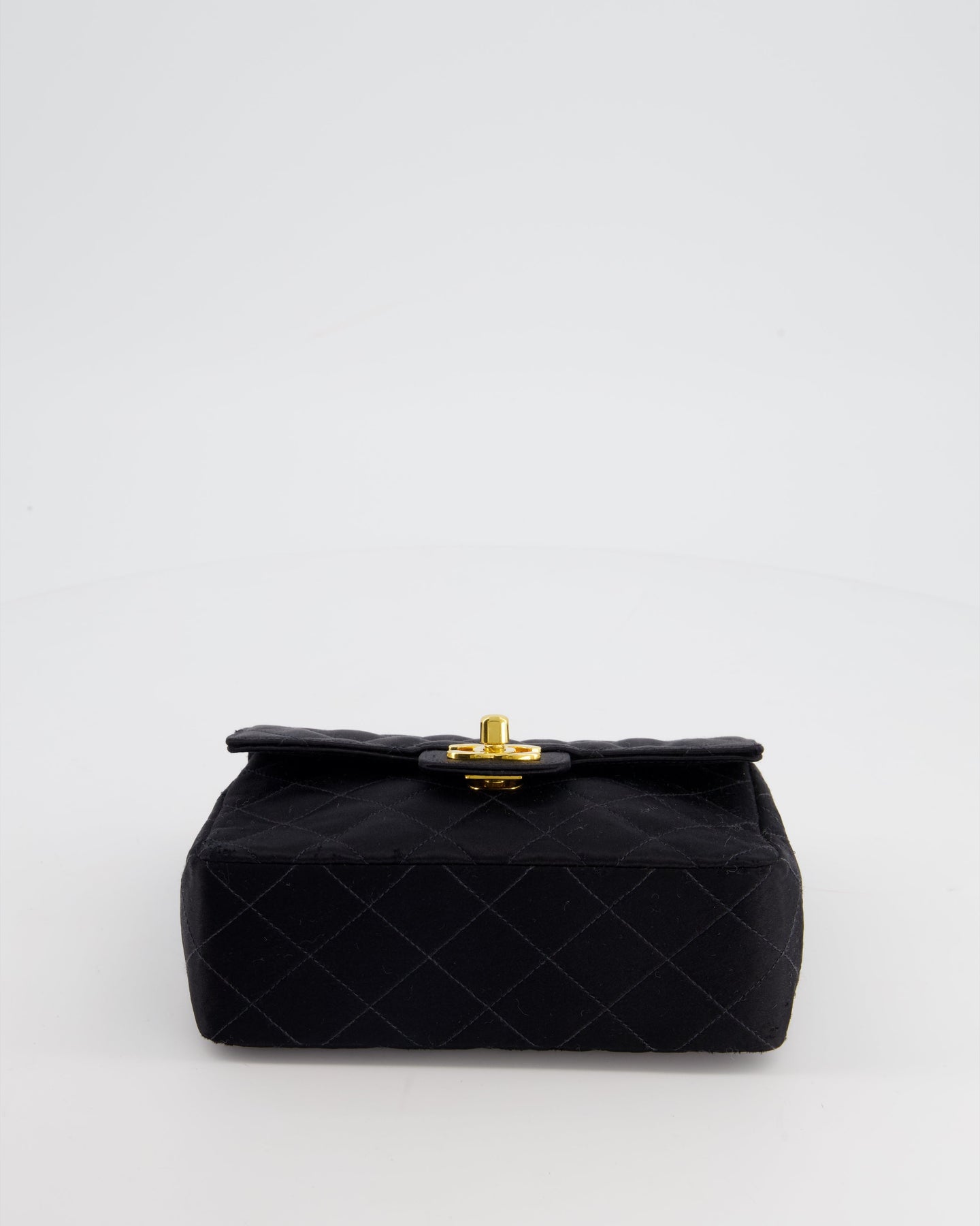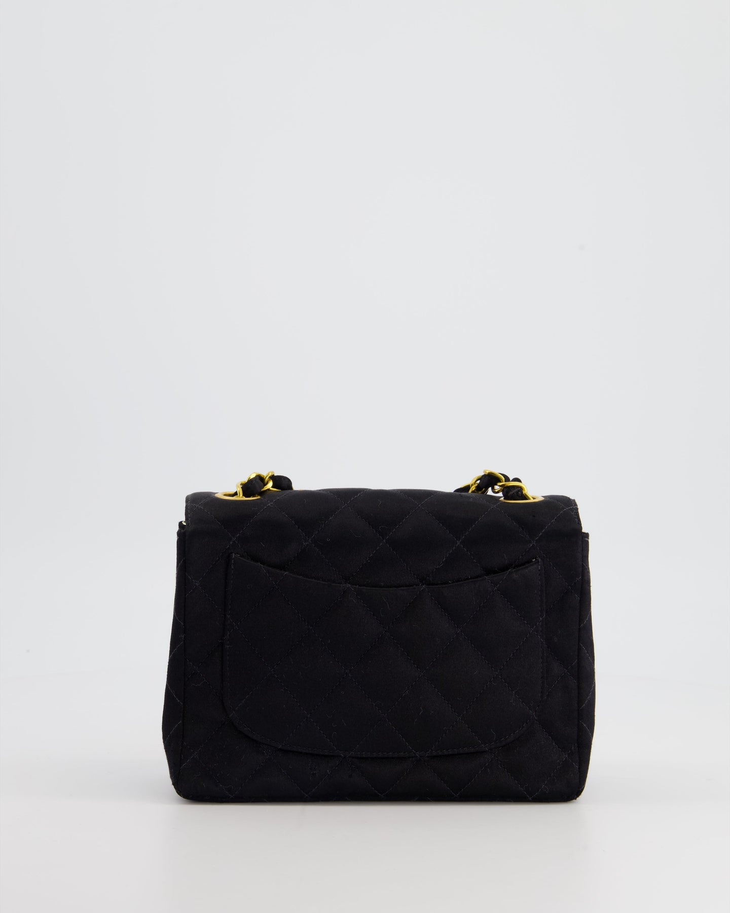 *HOT* Chanel Vintage Satin Black Mini Square Flap Bag with 24K Gold Hardware