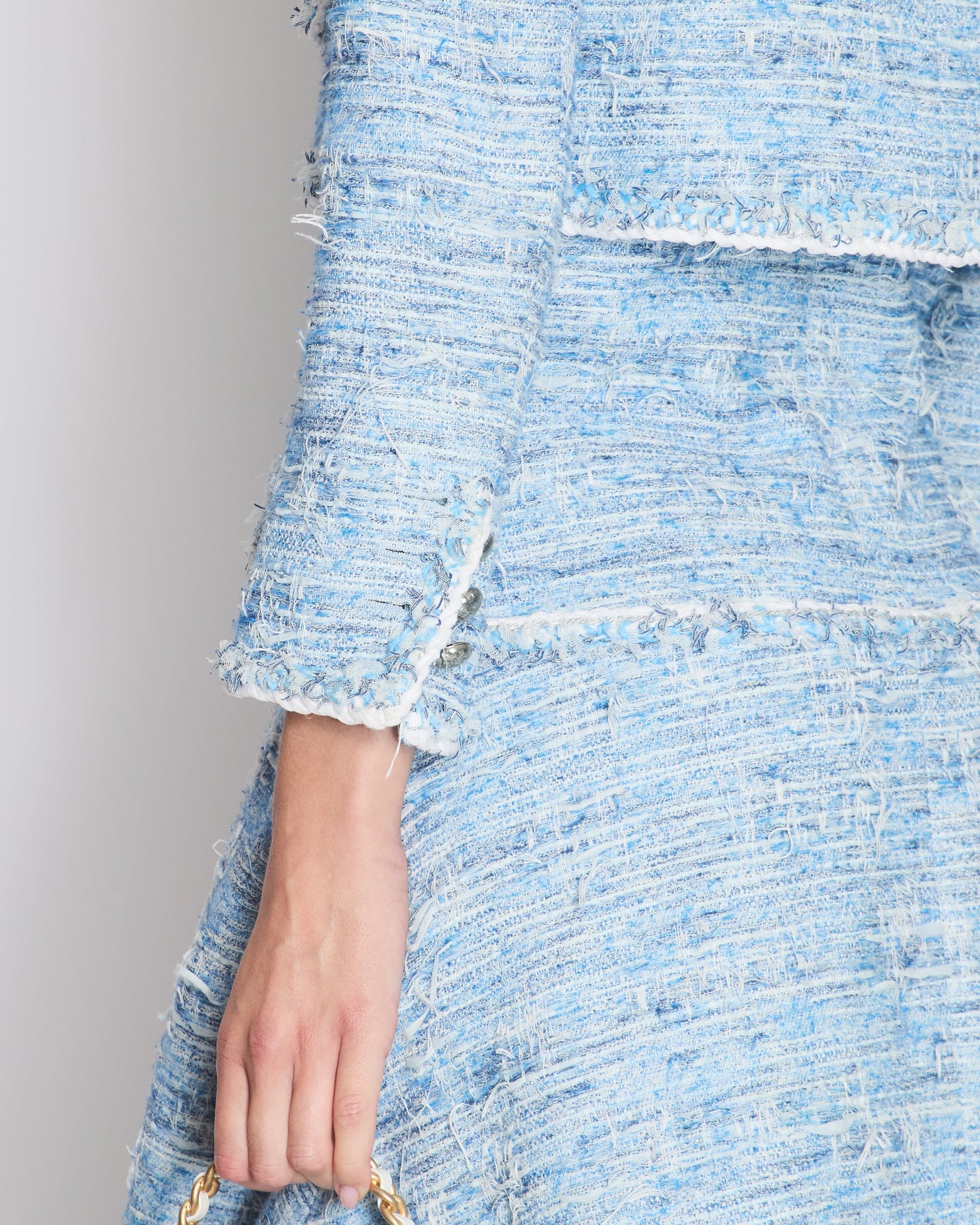 *HOT* Chanel 12K Blue Tweed Jacket and Tiered Sleeveless Dress with Pocket Detail Set Size FR 36 (UK 8)